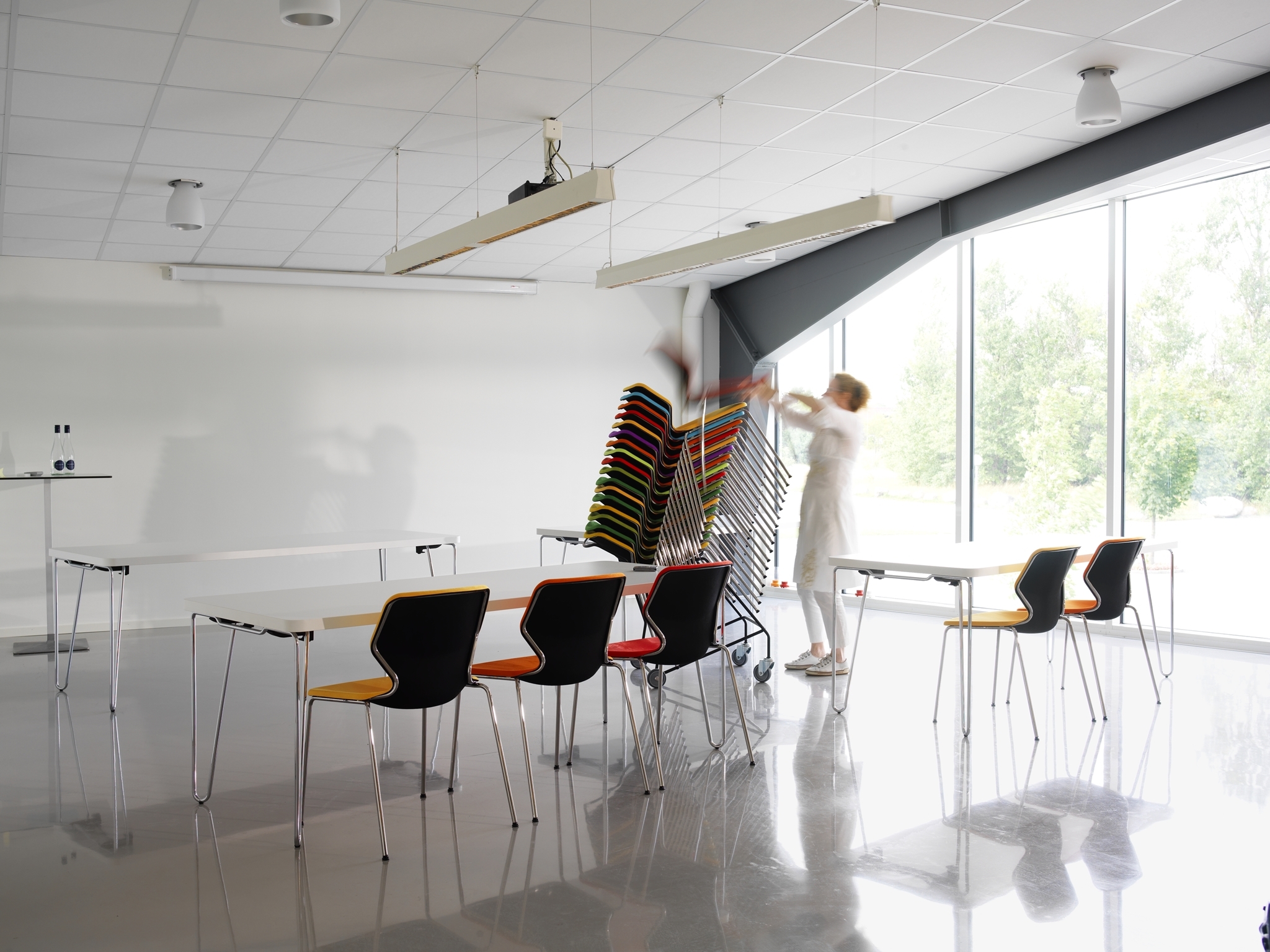 Boo是可叠放的椅子,其椅壳内部铺有福尔摩,织物或皮革。Boo适用于各种内部环境,例如会议室,会议室,餐厅和图书馆。由于具有舒适感,Boo的座椅非常吸音。由于材料和结构的选择,椅子轻巧。