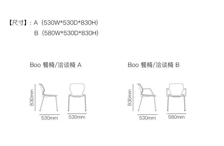Boo 餐椅/洽谈椅 系列尺寸/示意图