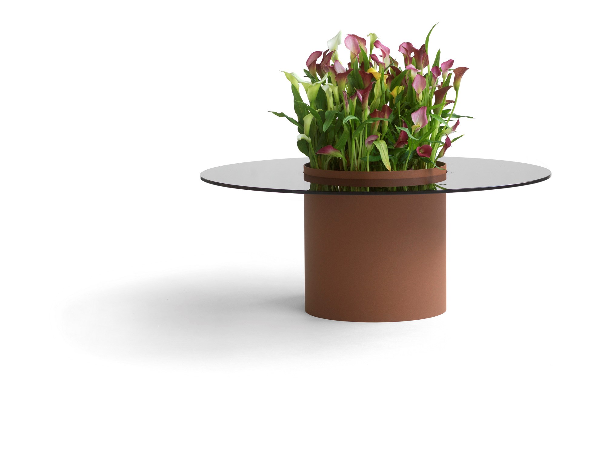 刺穿玻璃桌面的圆柱只是在等待一些鲜花,点心,酒瓶,玩具或将设计融合在一起的一点接触。桶渴望成为人们关注的焦点。不仅是桌子,而且是不断变化特征的设计作品。只需看看圆形或略微弯曲的方形桌面与圆柱形底座之间的对比即可,这些底座的灵感来自于沙子,兵马俑,无烟煤和黏土,在土质清漆中可用。还有更多颜色可供选择。