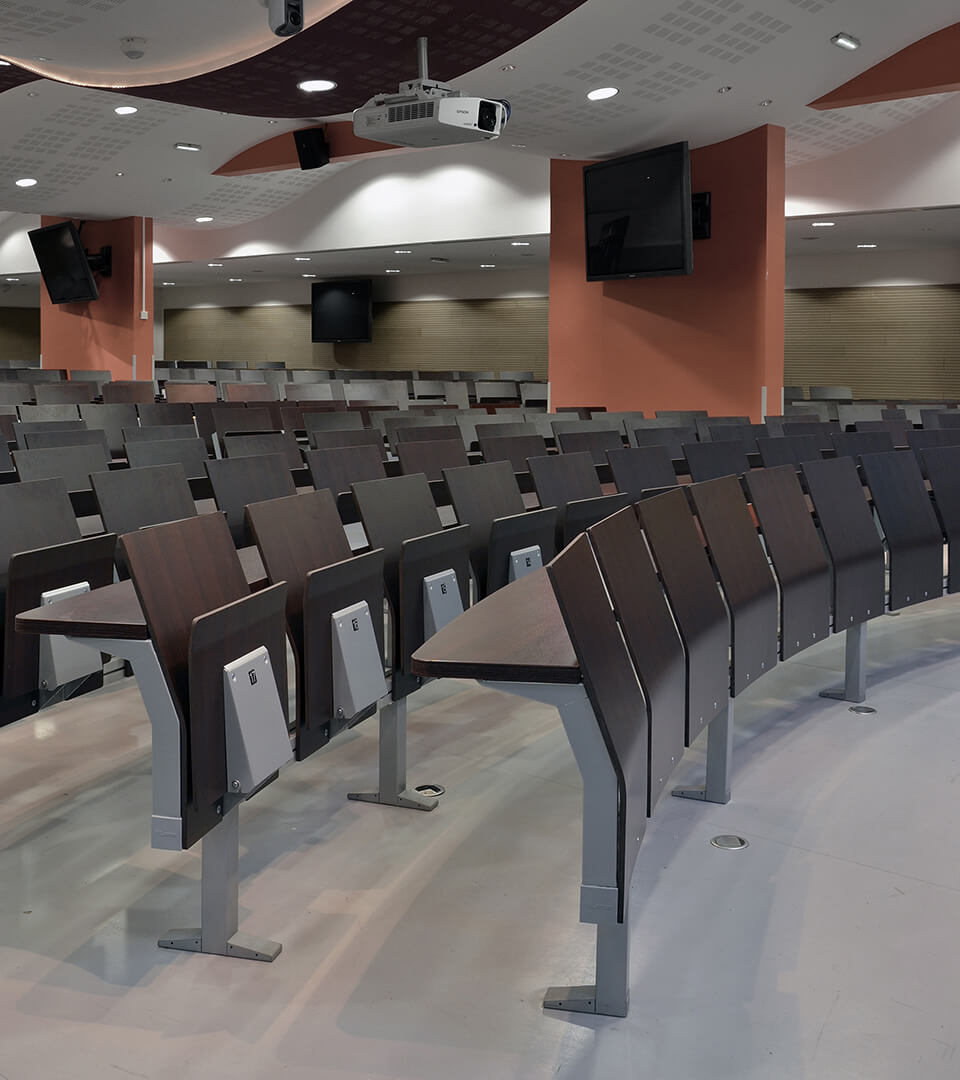 简洁,基本和中性的线条表达了该系列的简约理念,可改善任何环境。 所有组件均经过简化并提高了效率,以确保它们实用,耐磨并配备了多媒体功能。E4000家具系列适用于所有教学环境。系统的灵活安装意味着它可以适应任何空间和大小的形状。材料的强度和质量以及各种饰面创造了各种简单而精致的座椅解决方案。 E4000家具系列是多年设计的产物。