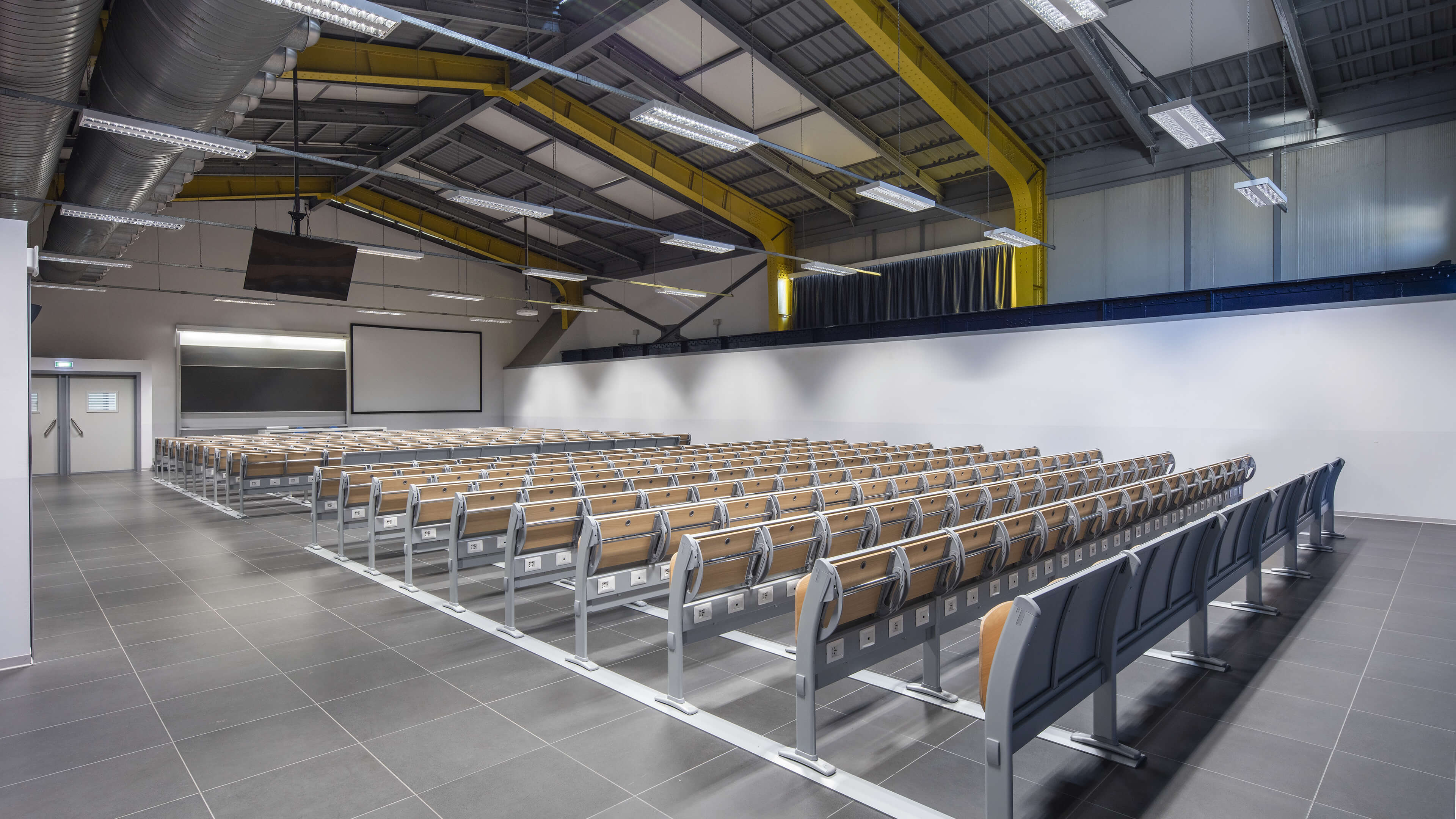 多功能的桌子和座椅系统,可放置两三个位置,直排模块化,非常适合大学,培训室或教学。特别注意结构的细节以及机芯的合理化,以确保较高的技术性能和抵抗力。该结构包括一个钢制地板支架,一个椭圆形的管脚以及一个由矩形管制成的水平连接梁,一个可用胶合板或模压板制成的连续靠背板。工作台由带ABS边缘的双层托盘组成,有固定版本,可折叠或带有防恐慌系统可伸缩。