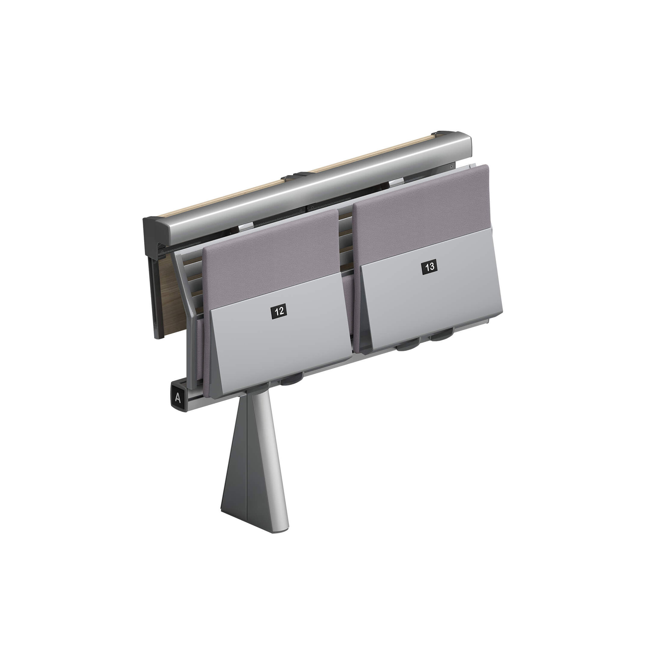 创新的座椅和桌子集成系统,采用新概念结构布局设计,简化装配操作,允许多种组合可能性。‎超越模块化,在克服与模块化相关的限制方面超越模块化,它允许无缝隙的连续形状,以流体水平线为特征,适合于均匀和舒适的学习或工作环境。‎最大自由的组合挤压阳极铝承重结构,有起拱作用和安装辅助元件(立柱、座椅、书写平板、支撑)的通道,无需钻孔或任何预定义的模块化,以保证结构的最大构图自由,甚至在安装过程中。‎安装可以是一条直线,曲线,在台阶上,也可以是在倾斜地板上(座椅之间的中心到中心距离可以调整)。‎靠背和座椅连续靠背版本由板条和挤压的、阳极化的铝型材制成,上部和下部采用双叠层或贴面的中密度纤维板。‎单靠背版采用山毛榉胶合板。‎两种版本都可以用织物或生态皮革填充和覆盖。‎Tip-向上座椅自动靠背,并与靠背进行协调。‎人机工程学设计的后座是按照脊柱的解剖结构设计的,无论使用何种安装配置,都能提供适当程度的舒适性:在水平地板上,在大台阶上,在直线或弯曲的行上。
