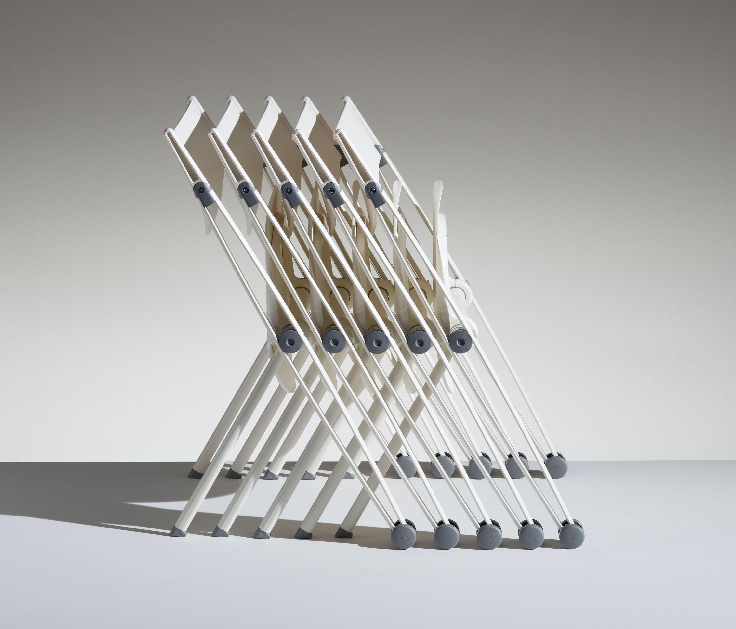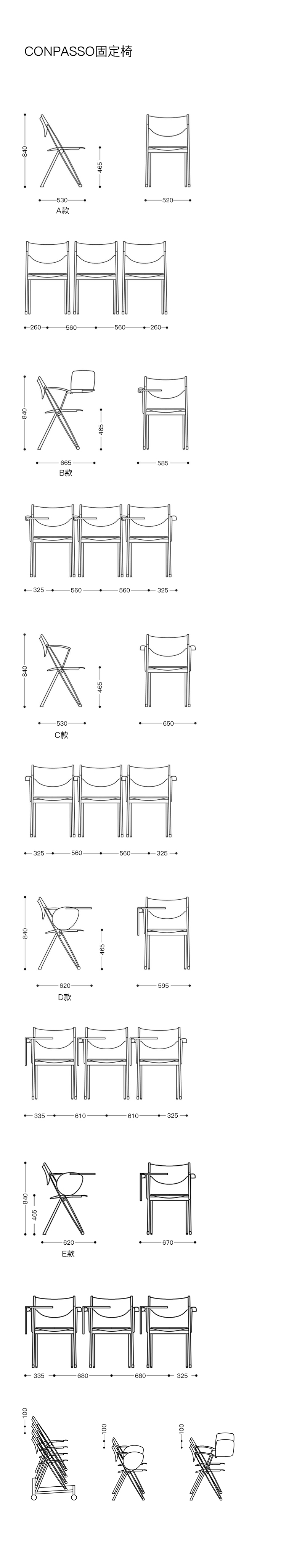 座椅系统提供固定或折叠式版本,带有手动或自动弹簧结构。座椅和靠背采用聚丙烯,榉木胶合板或聚氨酯泡沫衬垫和织物覆盖物,具有多种颜色。它也具有与特强钢梁相同的特性,配备固定的或倾斜的2、3或4个座位。