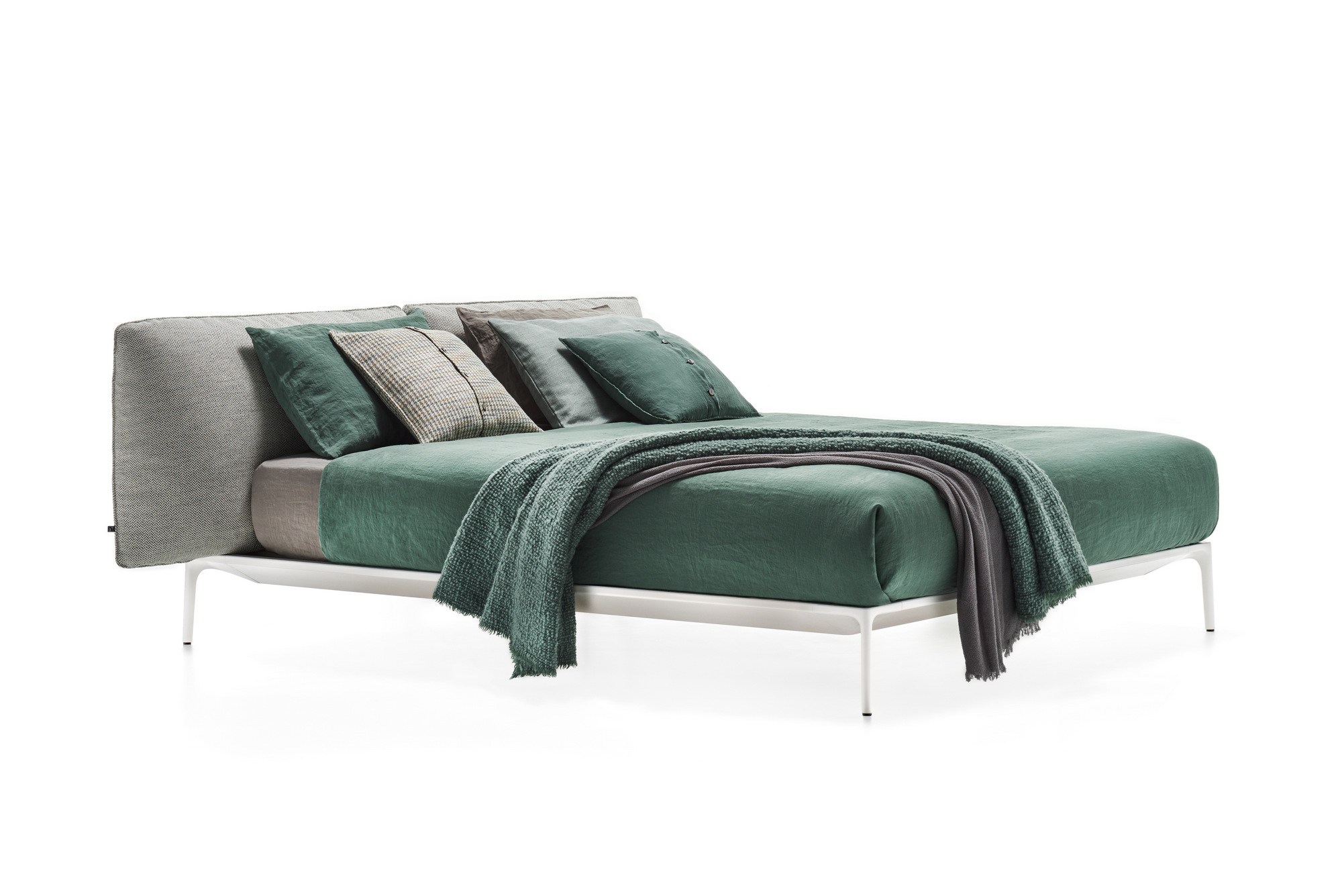 床在不同的版本: •版本具有低床头板 •版本具有高床头板 结构 。在挤压铝,铝压铸腿结构 。在颜色白,灰石和无烟煤灰色的结构绘无光泽 覆 在所述的内饰织物或皮革覆盖床头板的每一个部分,是完全可拆卸的。 如果需要,可选的附加盖是可用的。在皮革所有单位可能,这取决于它们的大小和MDF Italia与自由裁量权,一个或多个接缝。 接缝 这些对比的接缝中的颜色白,中灰和无烟煤,这可以通过在客户端进行选择和组合的表征和识别耶鲁床收集,只为高床头变体。可用的。 板条和矫形平台 承重矫形平台在40x30mm部,粉末涂层。钢管 固定结构,具有在层叠山毛榉厚度板条8mm时,宽度70毫米并装有调节游标。移动光标沿着板条的长度允许在后腰调整刚性区域,并根据个人需求和身体形状调整床形。 骨科平台桦木胶合板,厚度为20mm,涂上水性涂料,与横槽的床垫通风非常支持统一的舒适性,刚性和更好的支持。 注:板条和骨科平台是专门设计为插入在Yale床周边结构中,它们的尺寸减小到适合该床的大小。无法安装倾斜元素。