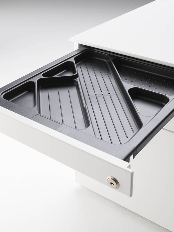 为了满足一流的质量和安全要求创建抽屉座符合DIN和GS安全标准相一致。 两种类型可供选择: •带锁的抽屉,完整的文具抽屉3抽屉的柜子,用车轮和防倾系统 •1个抽屉抽屉柜和1个带锁的储物单元,配有文具抽屉,带轮子和防倾斜系统 两种类型都有白色或石墨灰色可供选择,抽屉内部颜色相同。 ,抗倾斜镇流器处于混凝土。 滚子轴承滑动80%推广。选择性开口系统。中央锁定装置与弯曲键和可提取的桶。