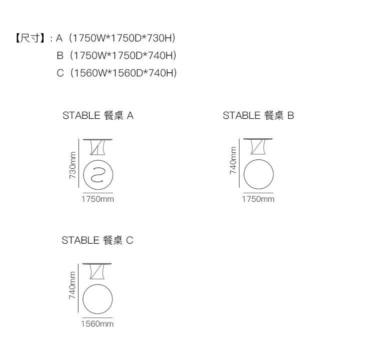 STABLE 餐桌 系列尺寸/示意图