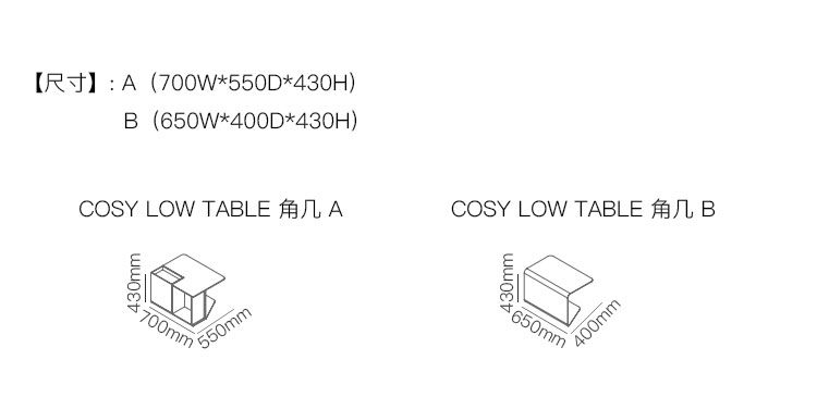 COSY LOW TABLE 角几 系列尺寸/示意图
