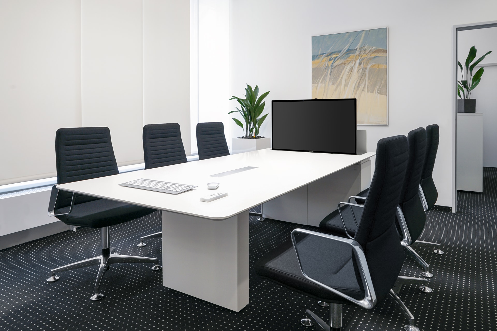 结合多媒体技术的X6系列配有内置隐藏式40寸显示屏幕,极具未来感的极简设计、完美的做工,可为各式的多人会议、演示、讨论提供最佳解决方案。人性化的设计,只需将电脑与主机相连,显示屏幕便会自动从桌面滑出。X6整合Plug&Play系统以及操作面板,可与任意一款P&P设备组合使用。
