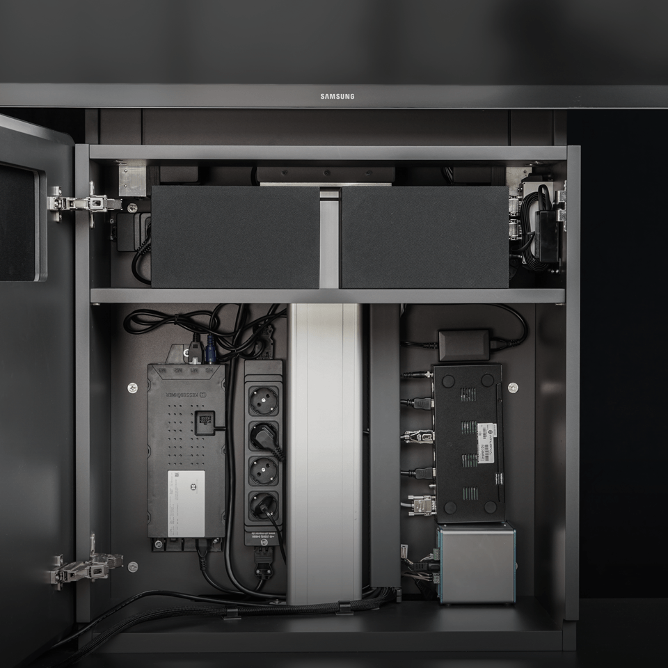 移动多媒体墙S1凭借着高功能性和灵活性的设计令人喜爱。集成的插头和播放控制系统提供了一个自由的多媒体方案,改变了用户的会议自由性。多种屏幕尺寸可供选择,适合于各种大小不同的会议室要求。