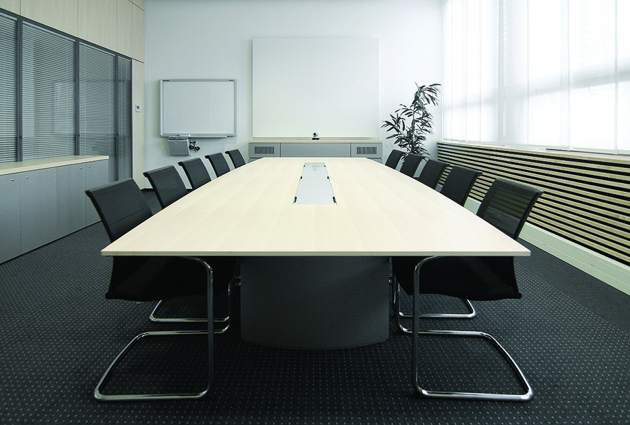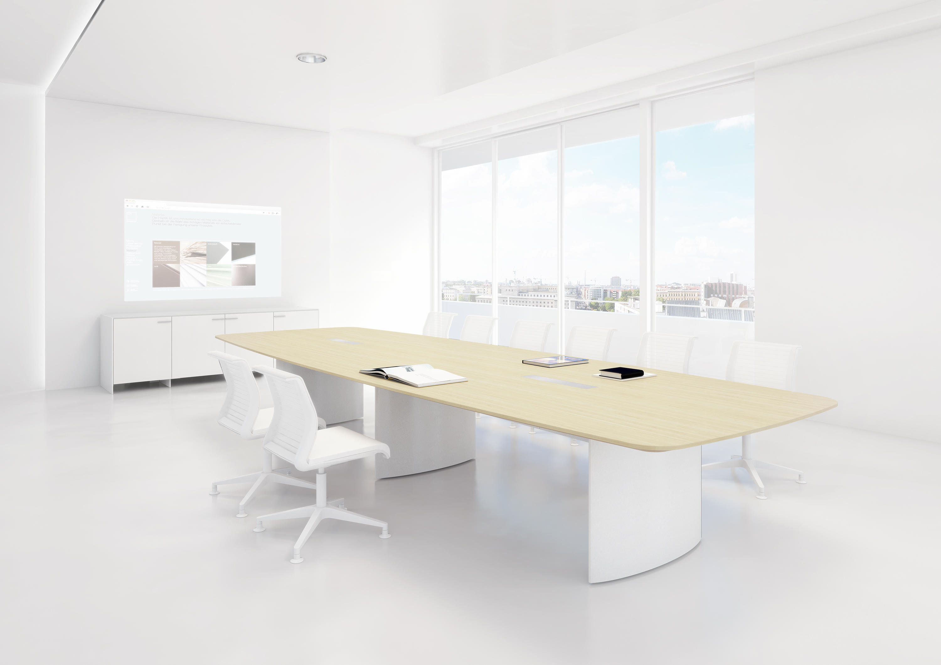 船形或椭圆形为基本形状的高级会议桌,经典椭圆形或长方形脚, 用于隐形电缆布线和技术集成-易于维护.
