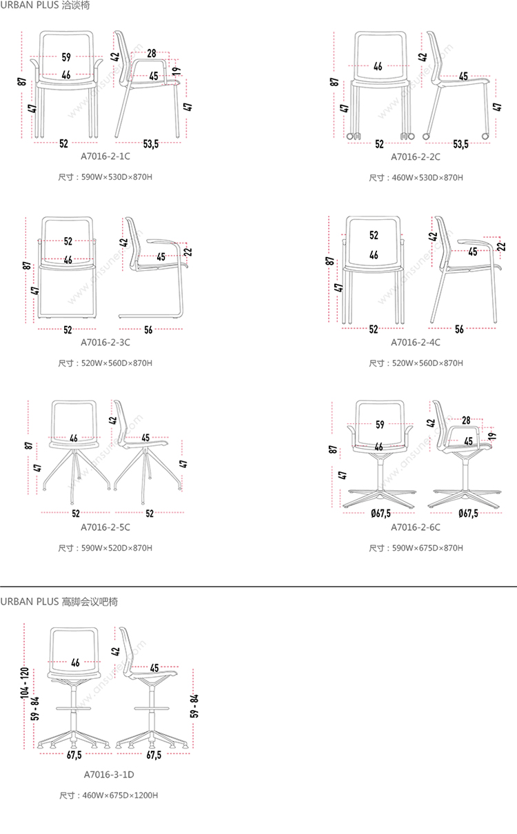 URBAN PLUS 系列尺寸/示意图