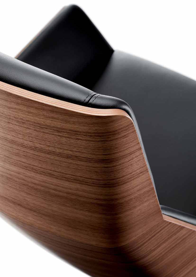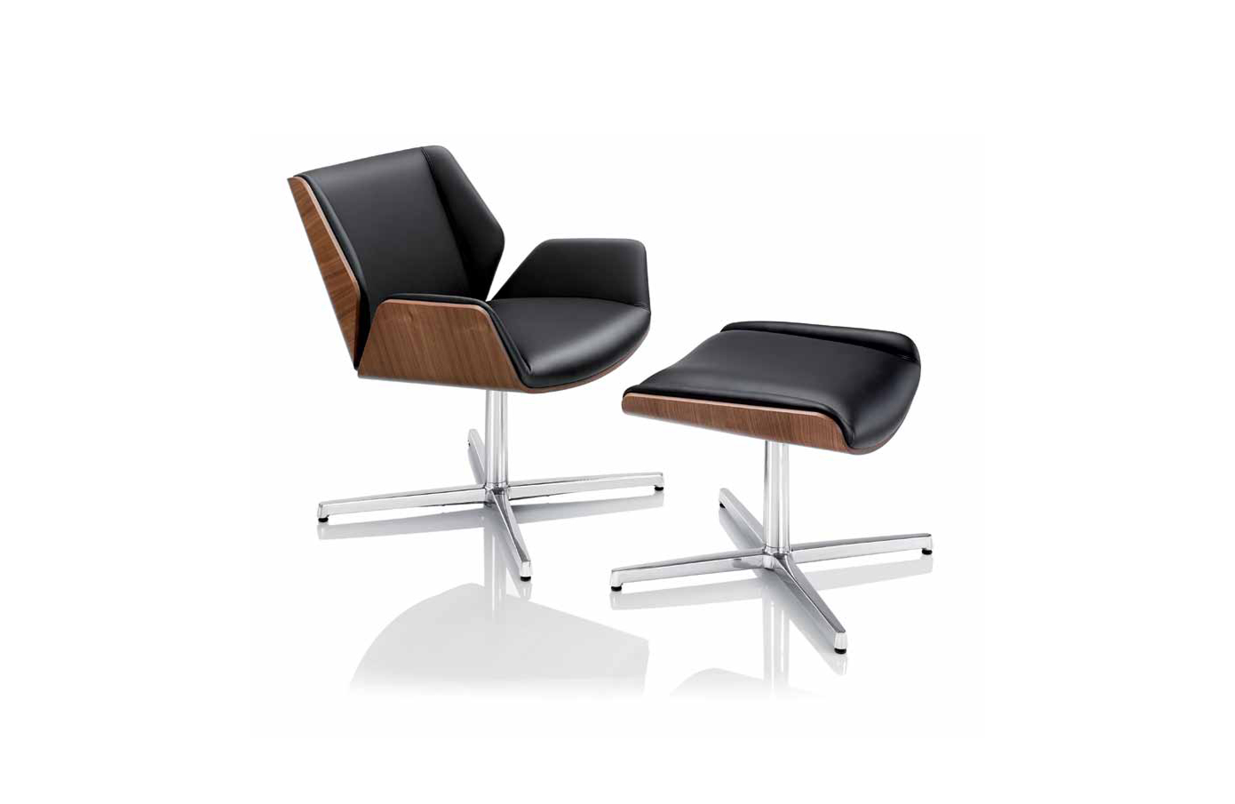 古典与现代的融合,诠释了Kruze(克鲁兹)躺椅背后的哲学。一种拥有醒目视觉效果和坐姿体验的智能设计结合了最精湛的工艺。高塑形的背部和轻柔弯曲的轮廓保证了坐姿的舒适性,而它别具一格的外形让它适应于任何行政大厅,接待室或会议区域。