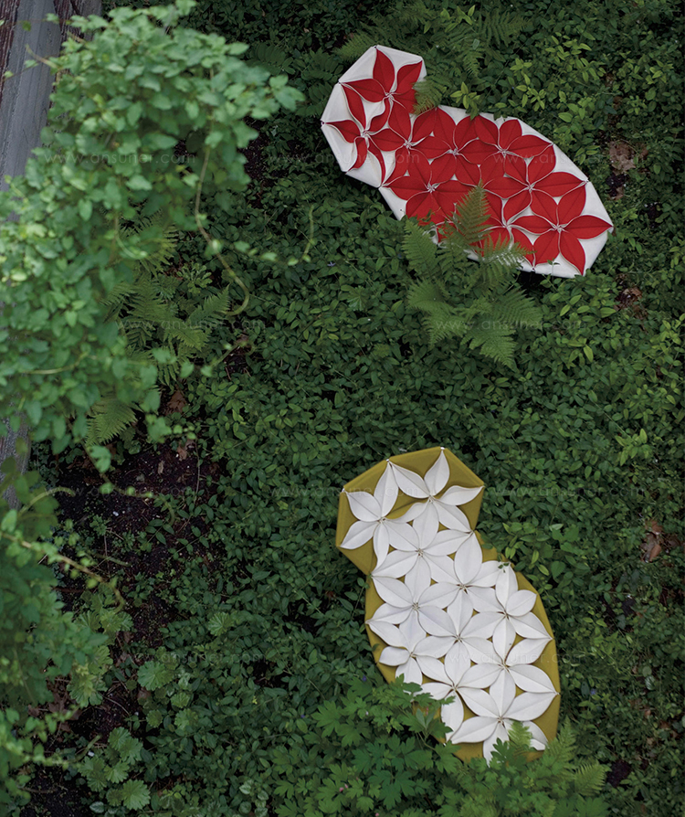 座椅上花瓣綻放的效果,傳達著兩種截然不同的情緒。花瓣向上伸展賦予了一種獨特而女性化的蓬勃的生氣;而向下的花瓣則顯得格外嚴肅認真。