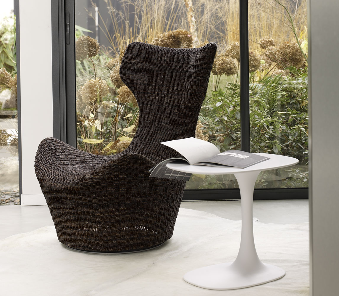 看似由單一材質一體成形的大型雕塑物件,Grande Papilio 流線形的設計從倒置的錐形體中雕塑而來。由下而上漸寬的椅背空間,提供了極致的舒適放鬆體驗。Grande Papilio 旋轉 360° 的底座系統能自由自在的環視空間中恣意流動的美好。強烈雕塑個性特質的 Papilio 系列家具也持續的擴大當中,不同大小和用途的 Papilio 家族:Papilio、Piccola Papilio、Grande Papilio、Love Papilio、Mini Papilio、Papilio Ottoman 提供了多元而完整的舒適空間。