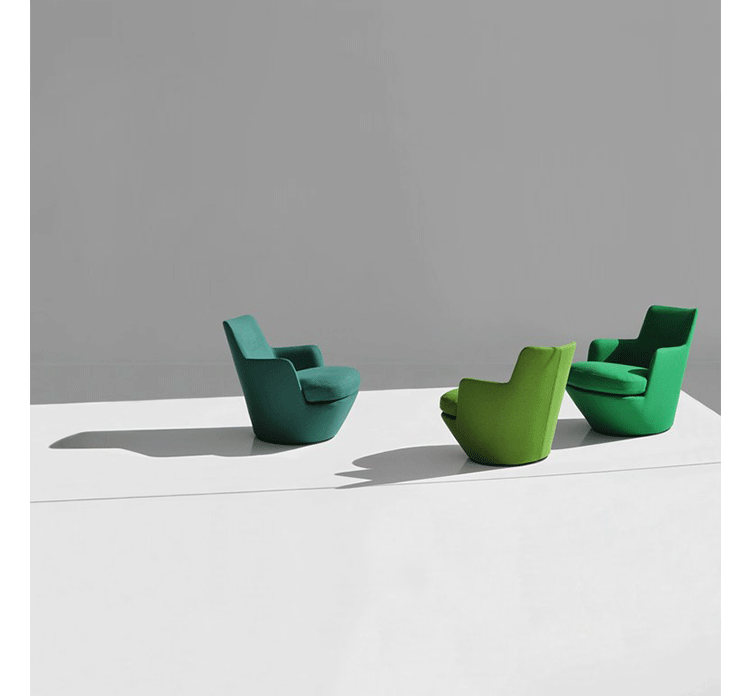 Low Turn Armchair(掉头扶手椅)是Niels Bendtsen设计的低背转椅,可360度旋转。简洁利落的几何线条赋予Low Turn Armchair雅致的摩登感,进口玻璃钢压膜椅身、进口羊绒布、软包内部填充进口高弹力海绵,提供最佳的舒适度。椅身织布可拆卸,方便清洗。