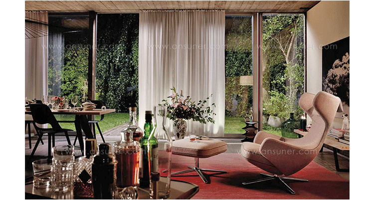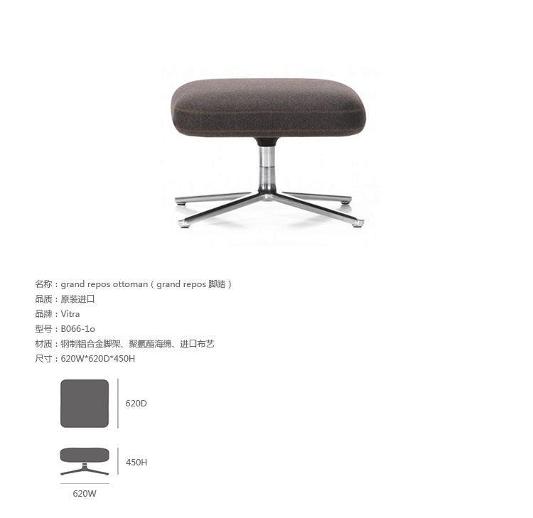 grand repos lounge chair and ottoman(grand repos 休闲椅&脚踏)由设计大师Antonio Citterio所设计的独特的,绝无仅有的休闲椅系列,椅子的创作面临的挑战如同伊姆斯夫妇当初设计著名的伊姆斯休闲椅一样,但正因如此,才能成为绝世经典。grand repos系列休闲椅采用钢制铝合金脚架、聚氨酯海绵填充、高级布艺扪面,可随意调整坐姿和高度,也可以放平躺,配上舒适的羽毛衬垫,无论阅读或者休憩,都非常舒服,符合人体工学,高档舒适,是办公,会议的理想选择。意大利设计师和建筑师 Antonio Citterio赋予了这边椅子永恒的优雅气质与无与伦比的舒适,是当代设计的经典,无论用在办公、商业、家庭都是非常高贵大气的。