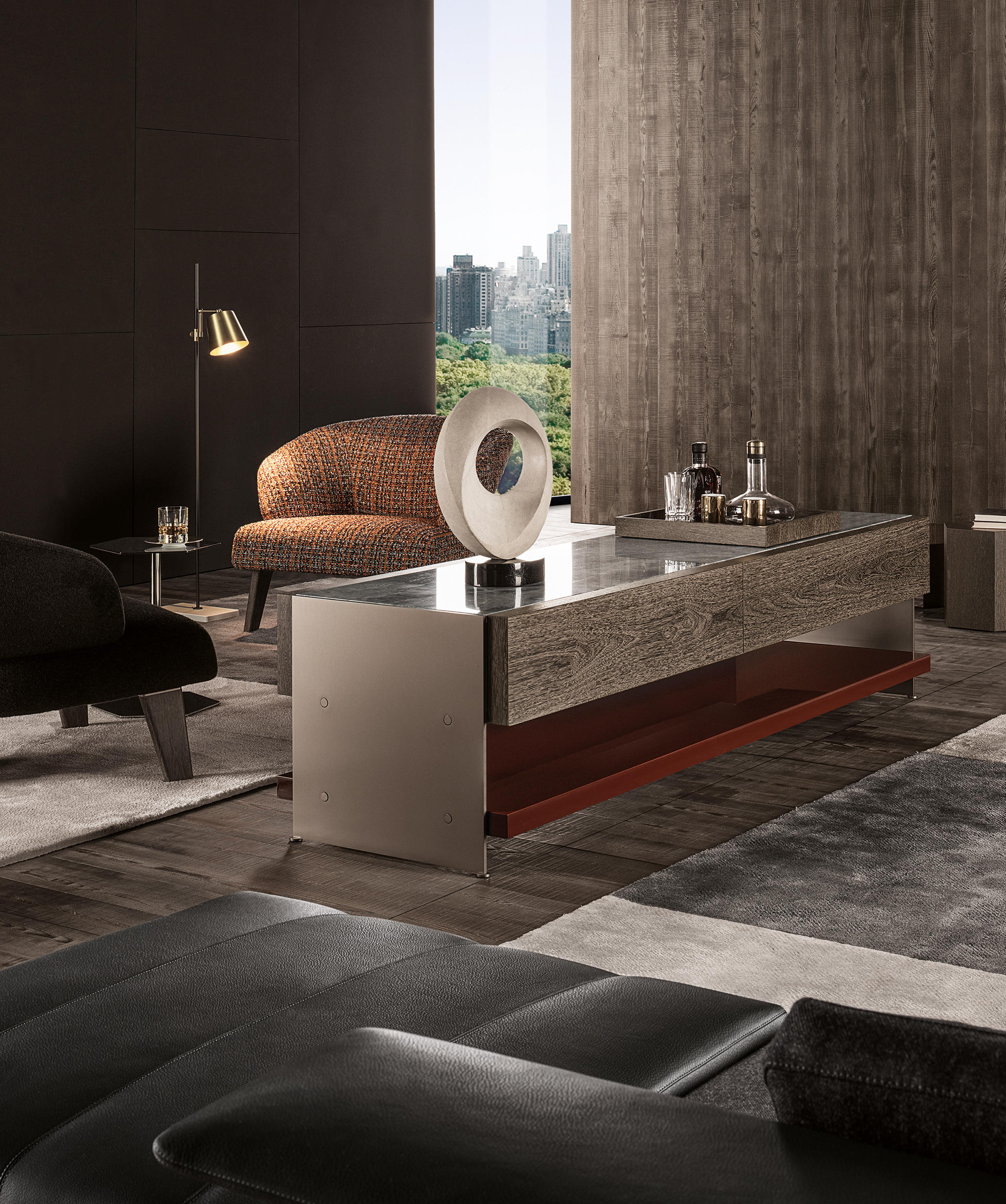Creed沙发系列极具个性风格,搭配2016系列中的各类产品均能达到相得益彰的效果,尤其是与Bellagio “Lounge”桌搭配,两者的组合可以打造出别具一格的环境氛围。Creed家族成员包括多款沙发椅,每件产品在设计时都考虑到其摆放的精确位置,同时兼顾用途和风格的和谐统一。Creed系列产品的比例设计精益求精,因而不仅可以和谐地融入居住空间,还可以用在接待场所,如等候室、前台区域、行政办公室。饱满而又舒适的造型,精致的表面包覆,一丝不苟的细节,这些就是Creed “Lounge”沙发的特质所在,使其成为居住空间的主角。