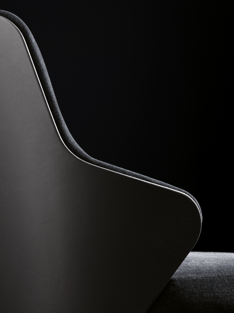 莱斯利“餐厅”小扶手椅展现出圆润而又迷人的造型和同名扶手椅的平衡比例。其特点在于冷模注塑而成的弧形靠背,搭配柔软的填充物。一丝不苟的覆面工艺打造完美的外观效果。Leslie “Dining”可以完全采用织布覆面或者皮革覆面,也可以选择混搭,靠背为织布覆面,坐垫则包覆皮革,体现两种材料之间的完美对比效果。Leslie “Dining” 小扶手椅有三种样式:Pewter色漆面的钢制固定基座,或是Pewter色漆面的压铸铝支撑腿。旋转式基座也采用Pewter色漆面的压铸铝支撑腿。