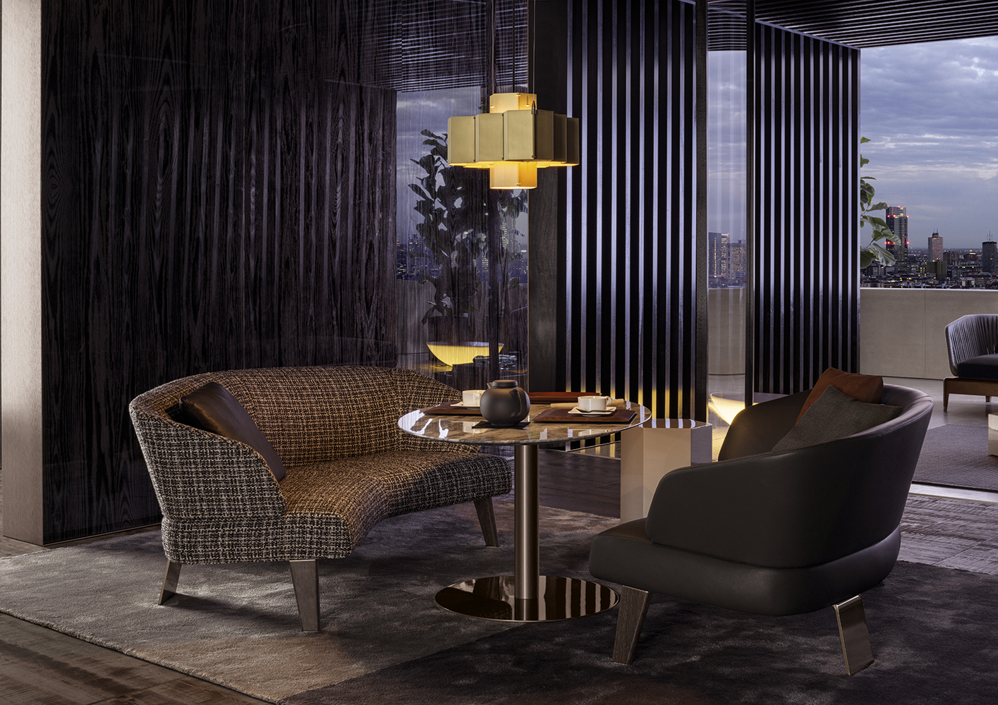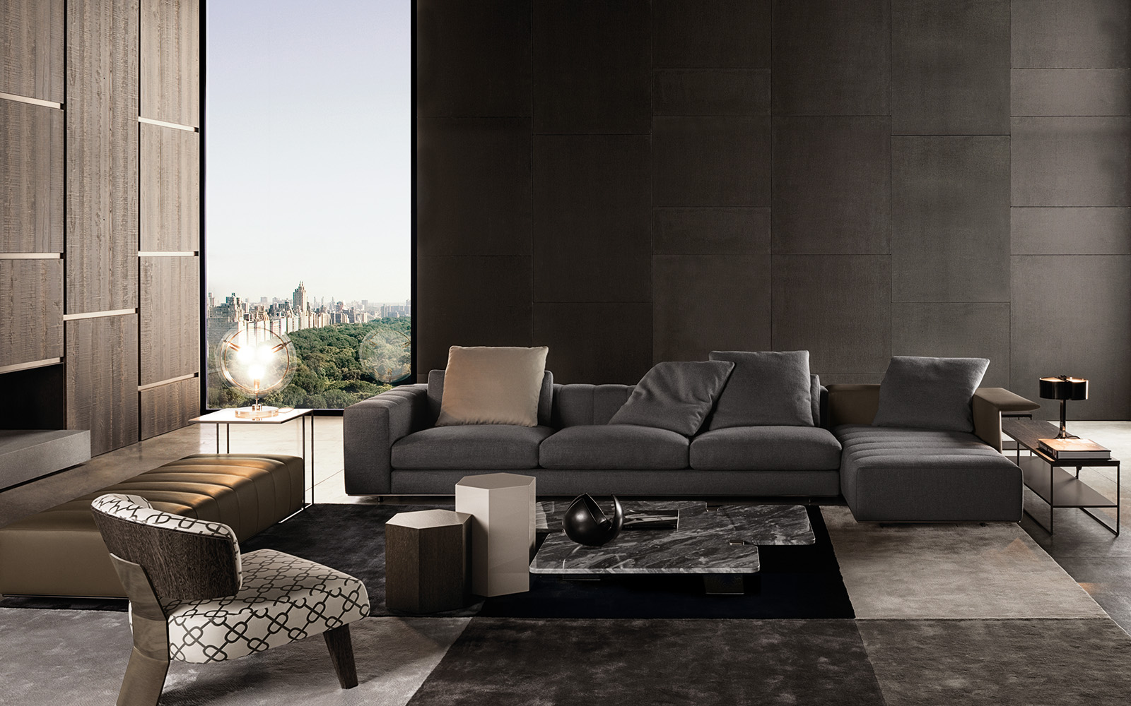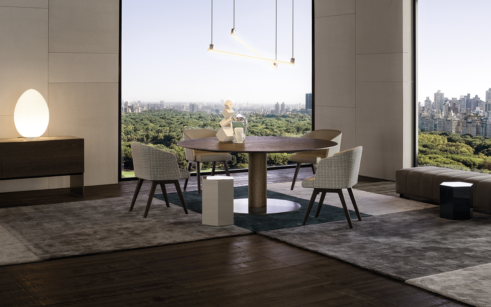 六边形棱柱的多面反光特质让人心动不已,完美呈现四款精致漆面的光泽:Corten色、青墨色、Sand色和灰褐色。在木制版本中,Aeron通过天然名贵的米灰色鲍迪豆木饰贴面来展现出其迷人的材质魅力。Aeron边几有多种尺寸可供选择,不仅造型极具创意,还可以与系列中的其他产品组合搭配出饶有趣味的效果。
