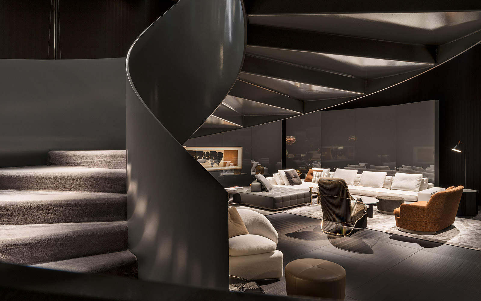 柔和的造型、紧凑的比例和具有视觉冲击力的细节呈现出精致的美学语言,金属基座采用淡铜色的表面设计。