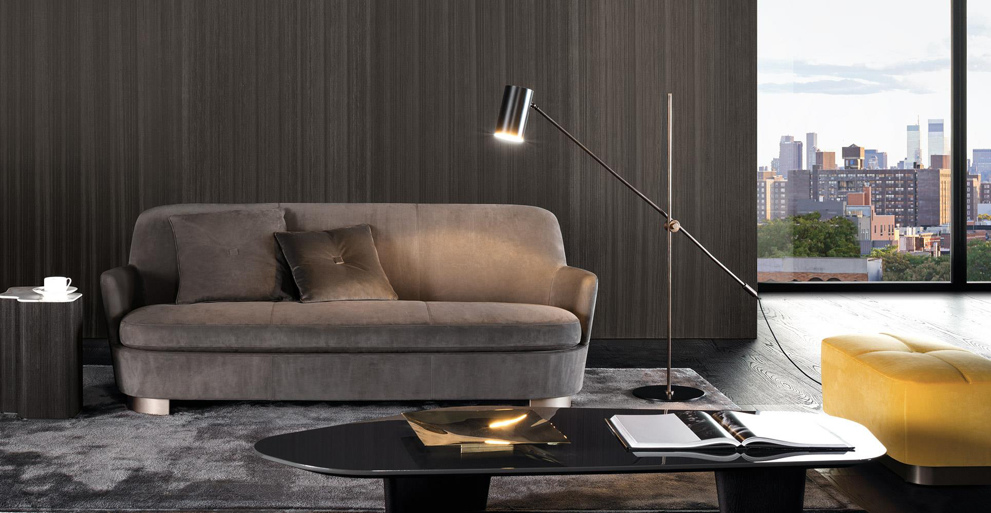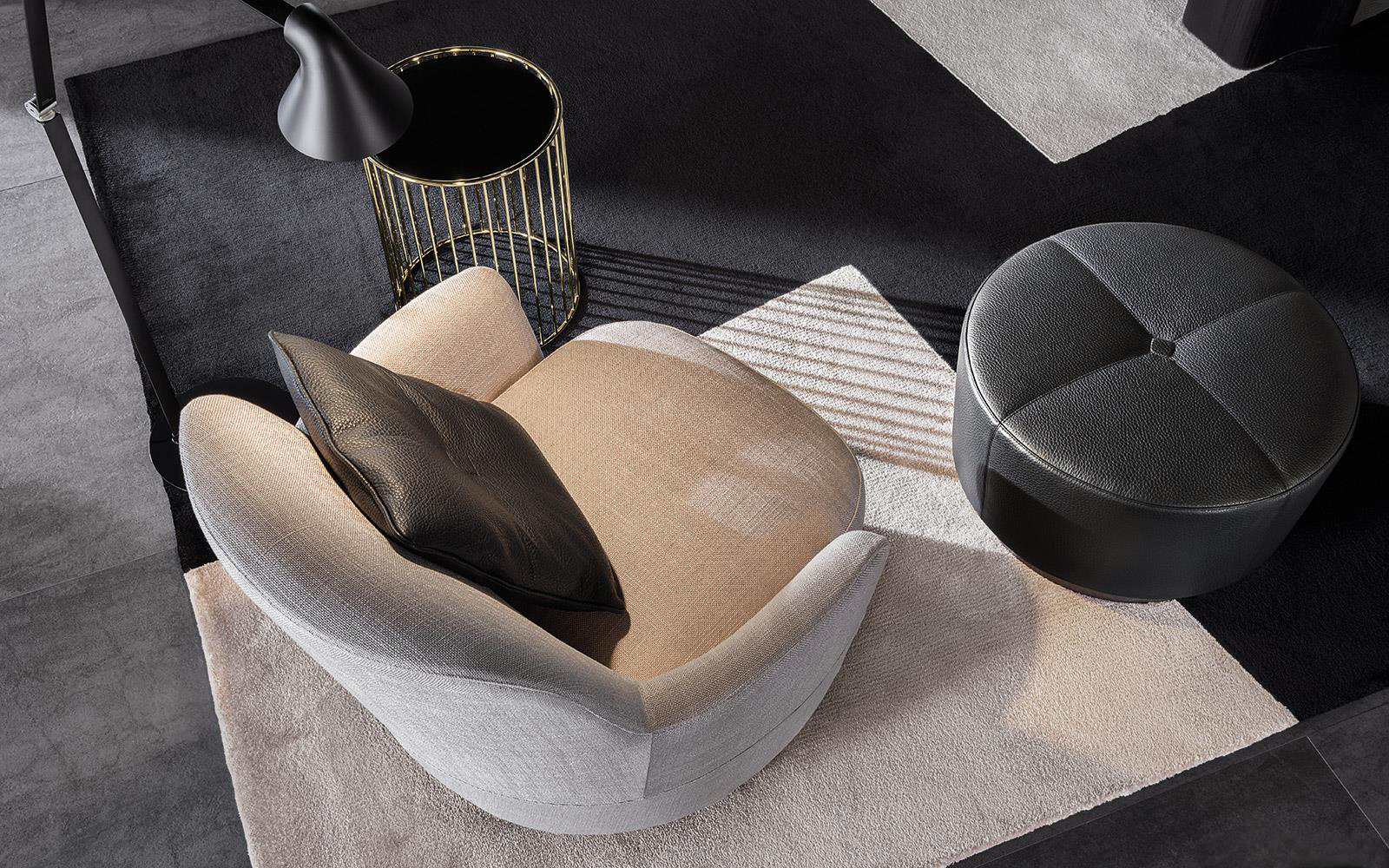 底座可以旋转的Jacques沙发拥有柔软的坐垫和靠背,带来绝佳的舒适感,尤其适合打造休闲放松的空间,可以搭配Song边几和脚凳,达到相得益彰的效果,边几不仅可以用来放置台灯,也可以用来放置各种小物件。