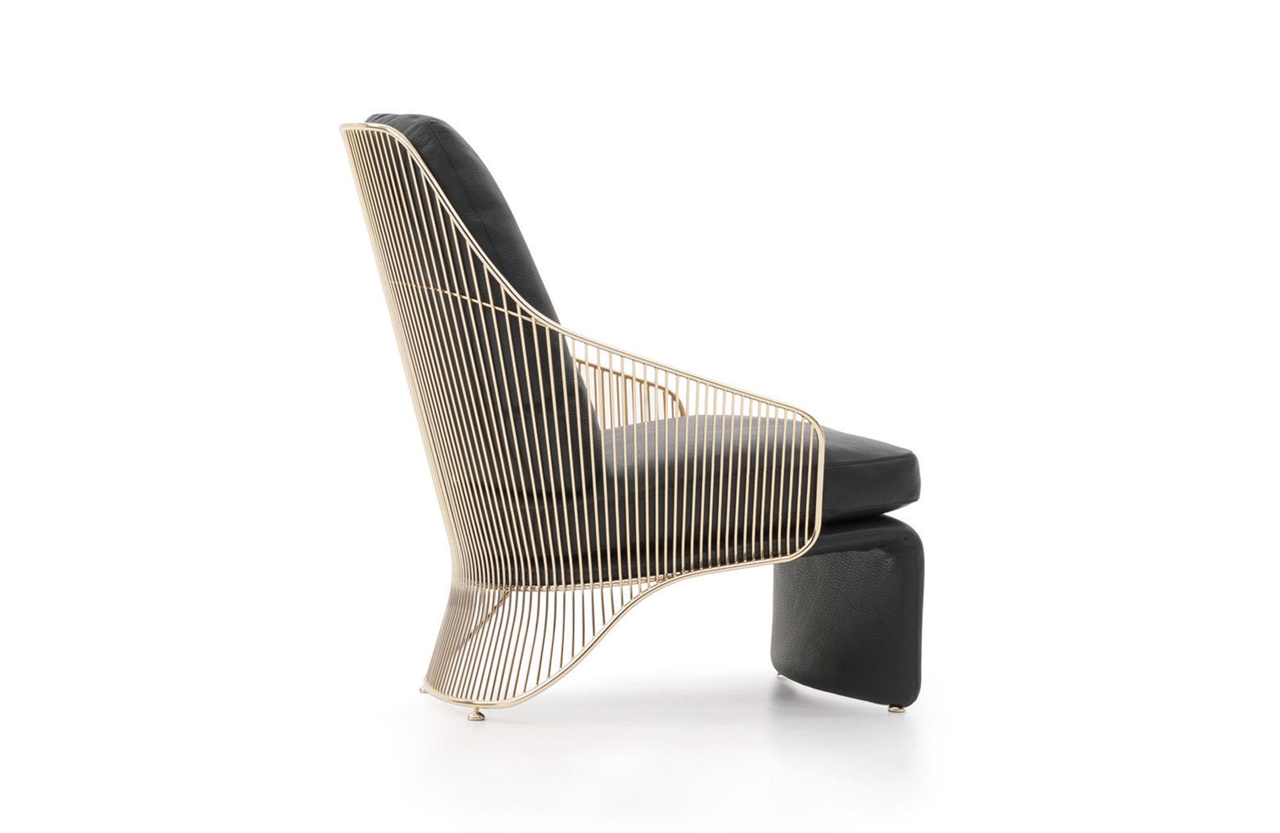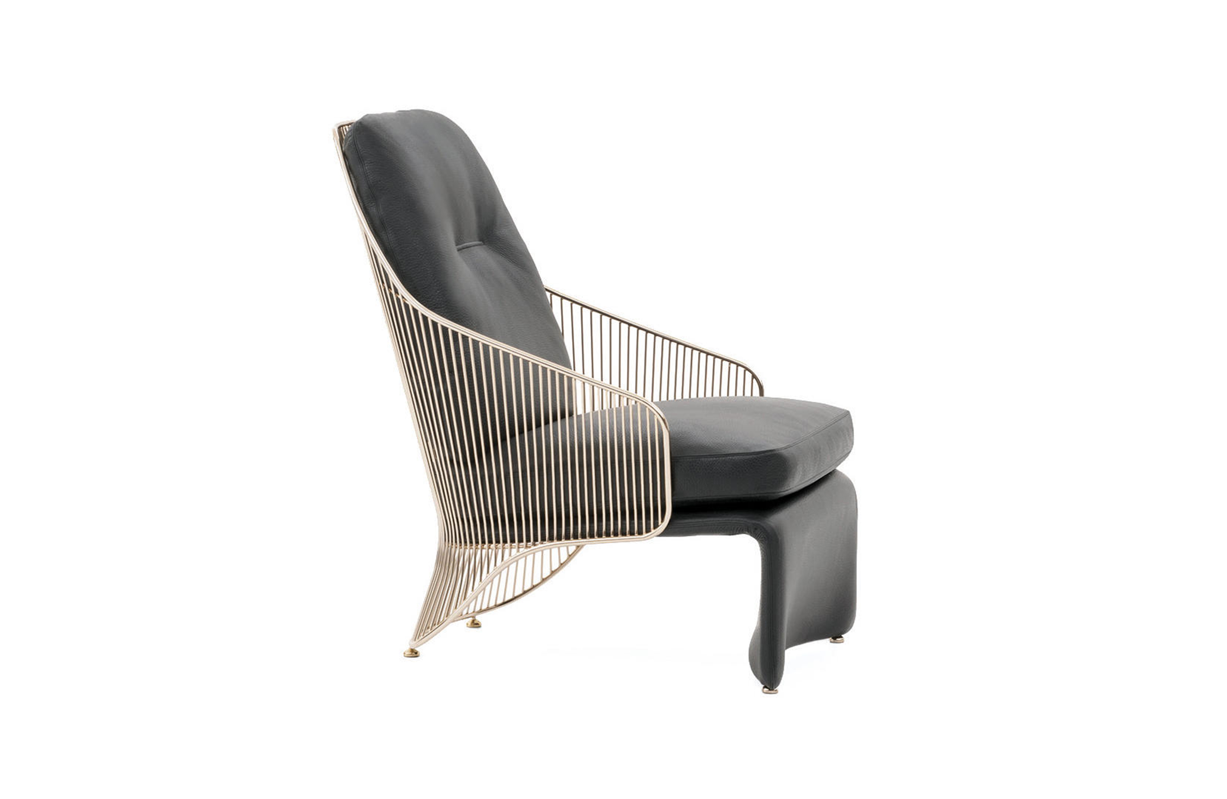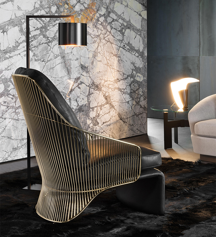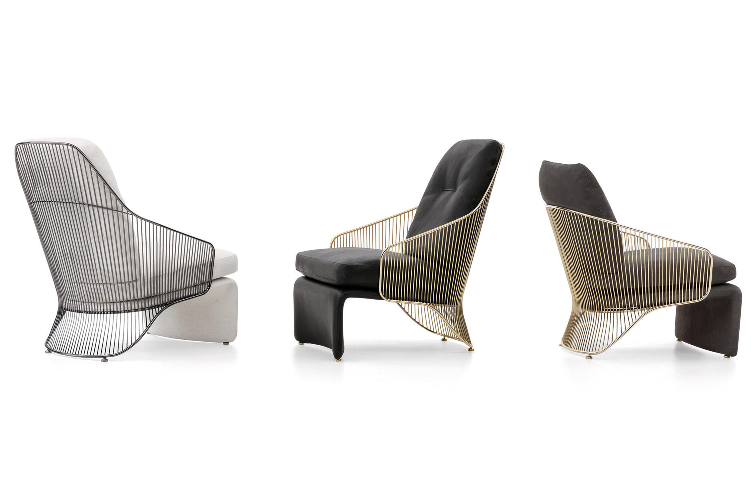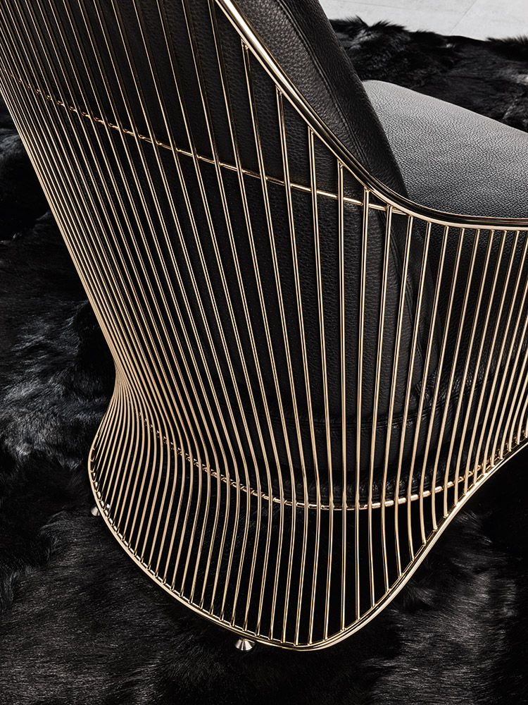 Colette扶手椅有两种高度和两种饰面可供选择:淡金色和黑镍金属色。