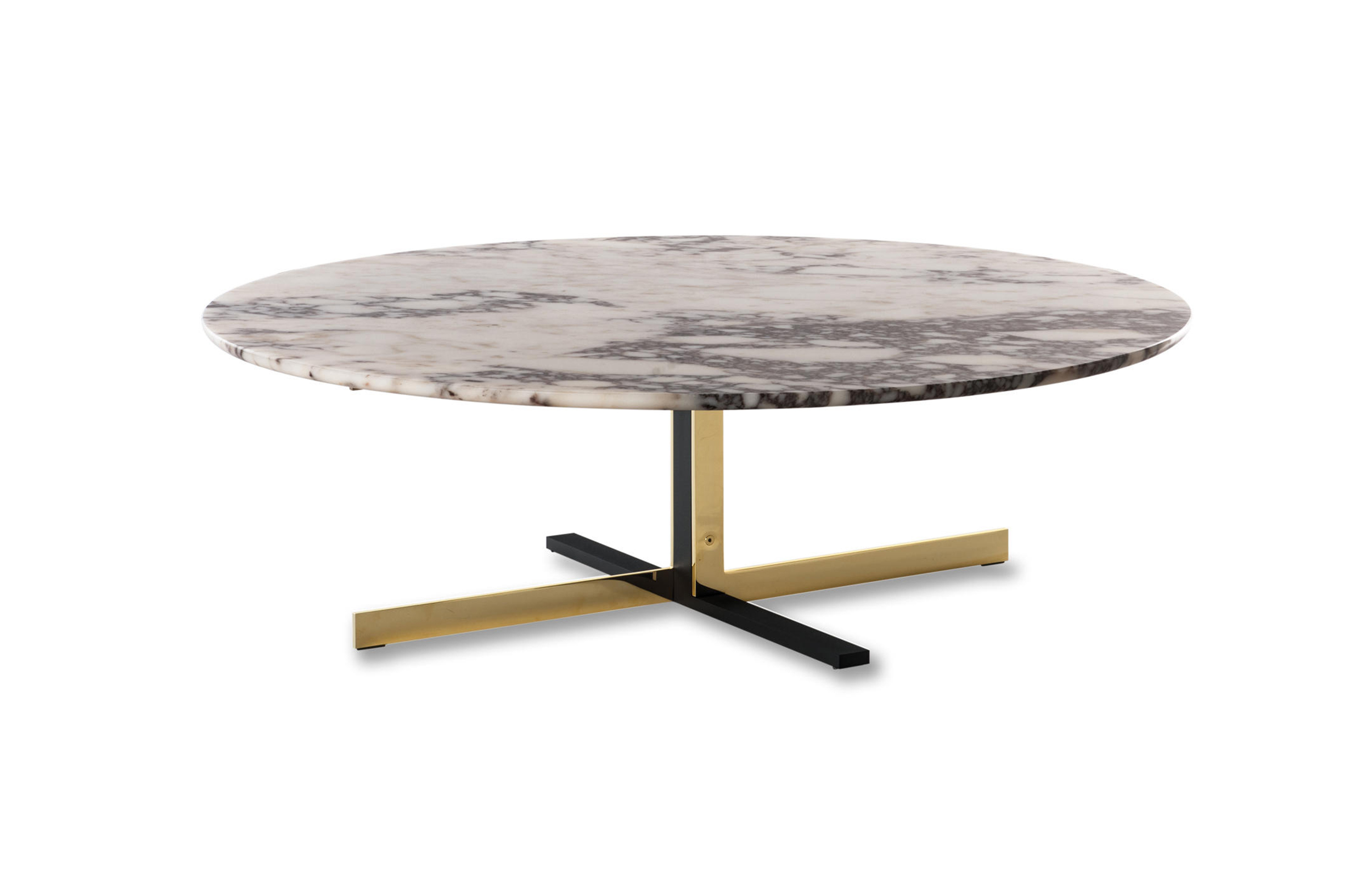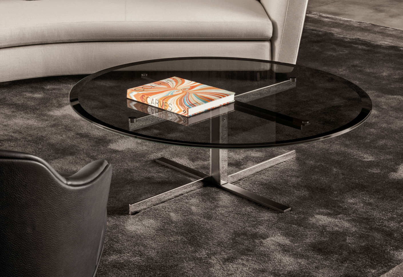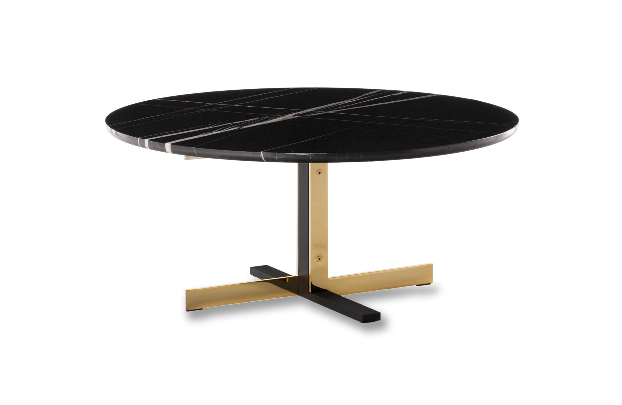 这组边几系列简洁洗练,材质的选择展现出精致的典雅。如果说Catlin边几的设计崇尚简洁,那么材质的选择则旨在打造非凡的视觉和触觉效果。金属基座有着精致的十字形地面支撑腿,其中包括颇有趣味的组合:黑色压花搭配铬色或金色的抛光表面,打造出多种多样的风格。材料的搭配体现出非凡的优雅感,台面可以选择烟灰色的玻璃材质,或是选择两种珍稀名贵的大理石,Arabescato Purple或Sahara Noir,两者都拥有抛光表面。Catlin系列有圆形和椭圆形两种造型,有不同的尺寸可供选择,正如边柜和餐桌一样有多种类型。