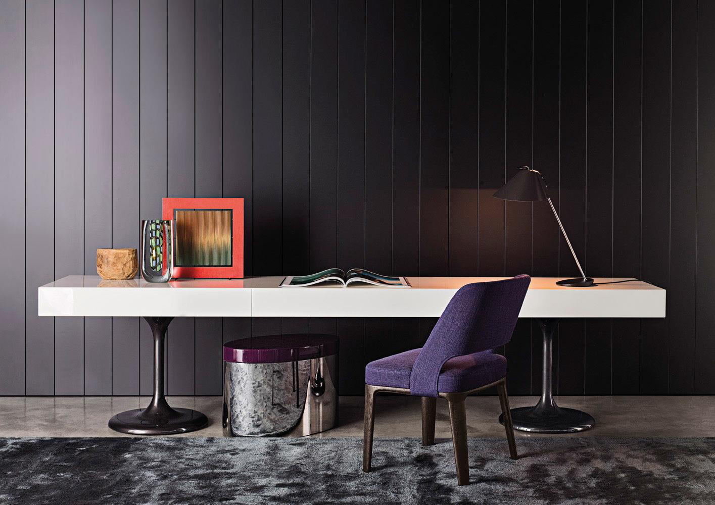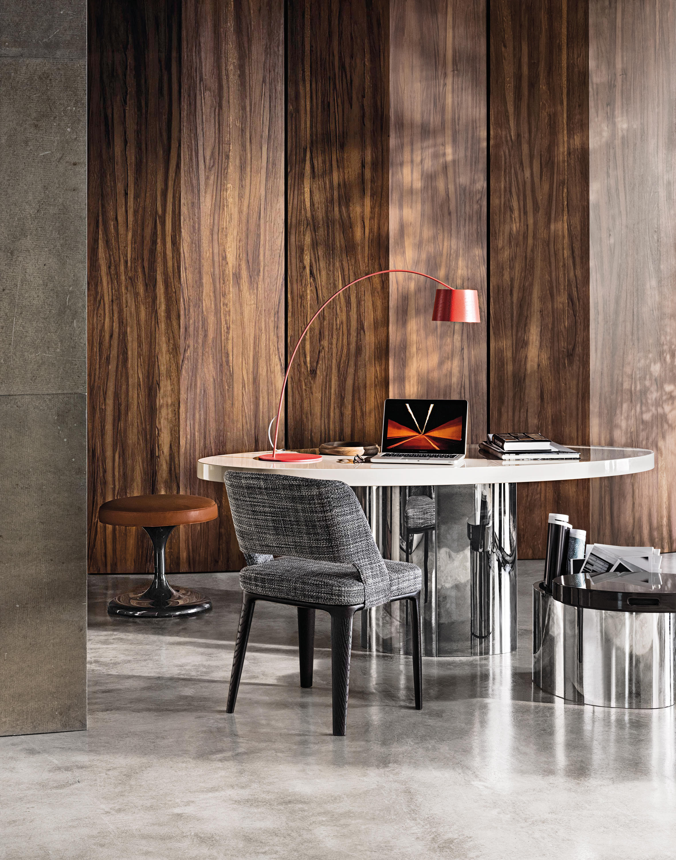 这款产品属于Raymond系列,但是又自成风格,可以作为边几也可以成为座椅,其内部还有一个极为实用的杂志收纳空间。收纳凳的底部为黑色皮革饰面,印有Minotti的logo。上方部件采用亮光漆面,颜色为白色、Sand色、花岗石色、绿色和紫色,搭配实用的椭圆形内嵌手柄,以此可轻松提起顶盖。休闲凳版本的上方部件则添加填充物,包覆Minotti独家系列中的布料和皮革。