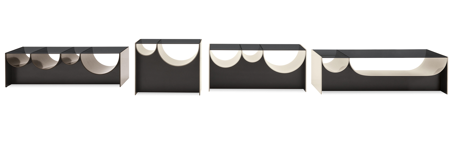 连续的连续的倒置的半圆形使前轮廓蜿蜒而上,适应了空的空间,使使用者能够将杂志、报纸和小物体以平视的方式离开。