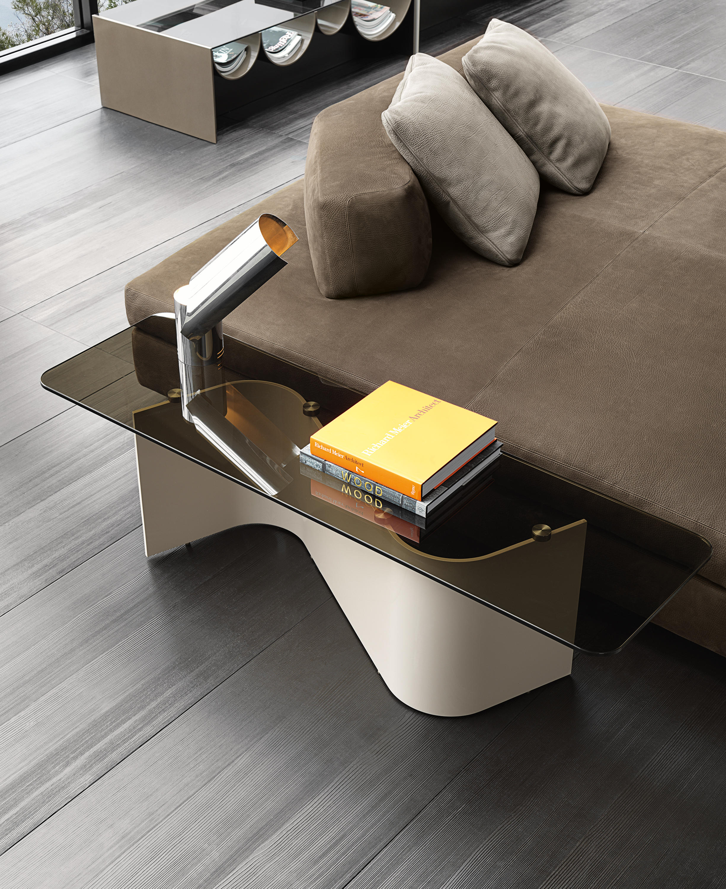 为了表达对当代雕塑世界的敬意,本德的侧桌重新诠释了一种被弯曲和伸展的波浪运动所影响的金属板的概念。