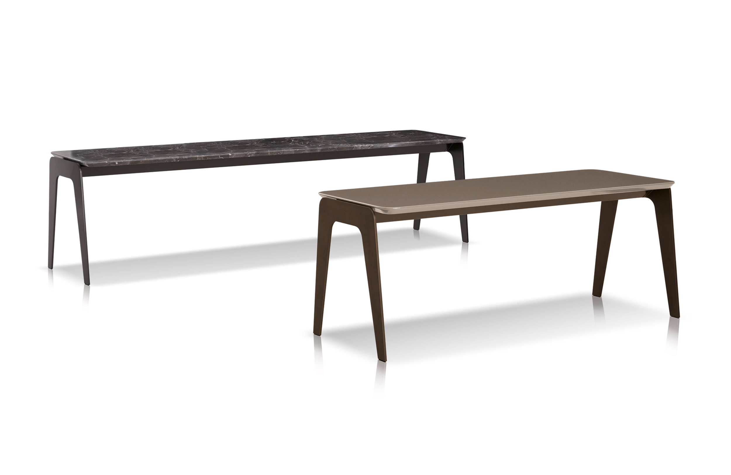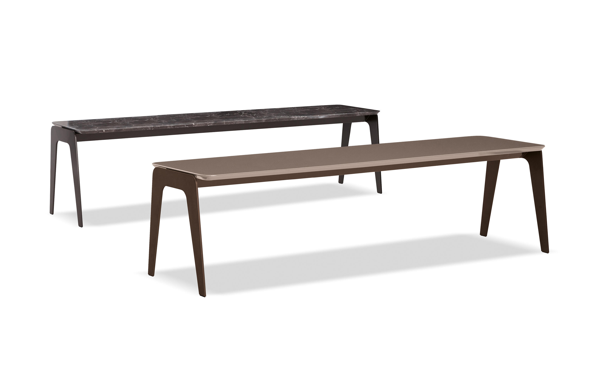 Kirk 木质底座茶几统一以矩形呈现,有三种长度可选。
