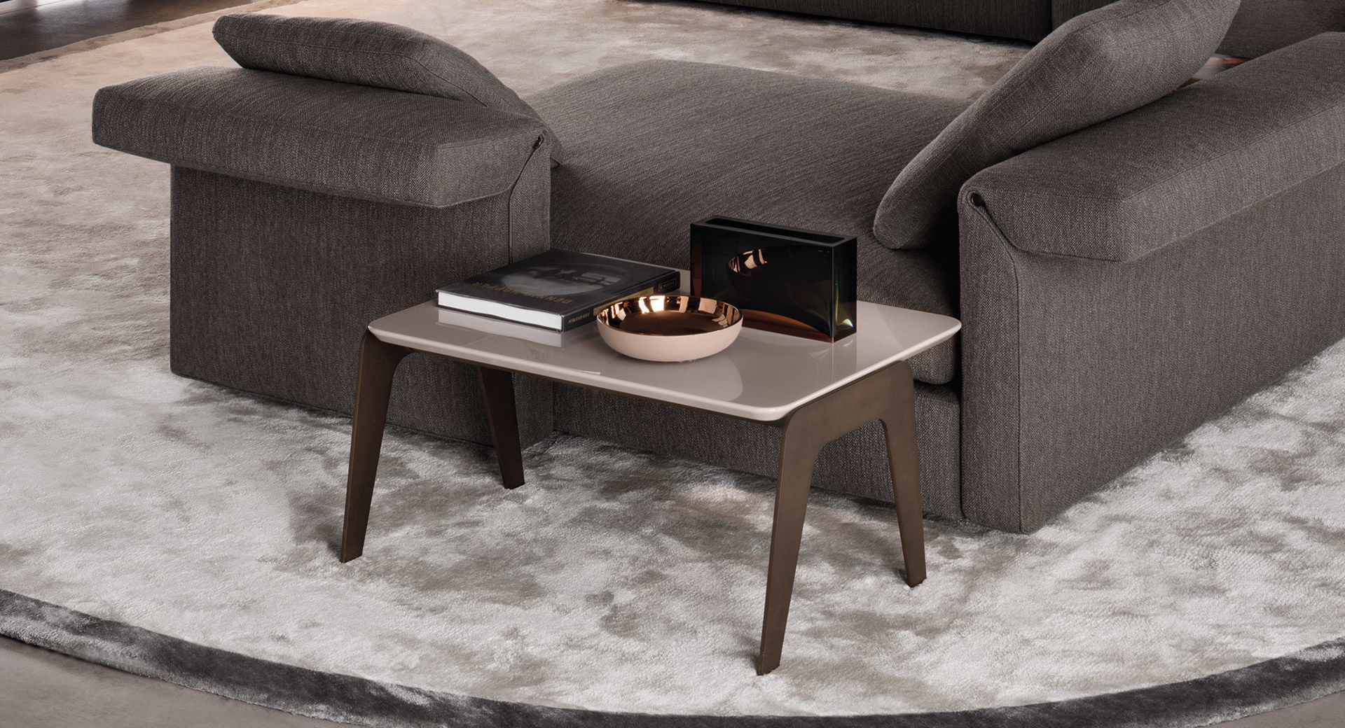 Kirk 木质底座茶几统一以矩形呈现,有三种长度可选。
