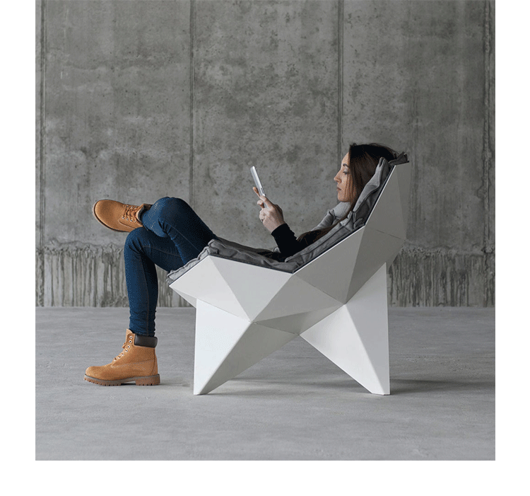 由乌克兰设计师Zbroy Svyatoslav和Dmitry Bulgakov合作创办的设计工作室ODESD2设计的Q1 lounge chair(Q1 躺椅)。半球形构思基于巴克敏斯特·福勒(美国哲学家、建筑师和艺术家)球型屋顶设计,这种类似球型穹顶的构造承重能力更大,而且凌厉的线条与舒适的内饰,相得益彰。