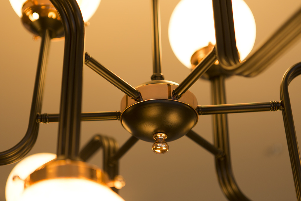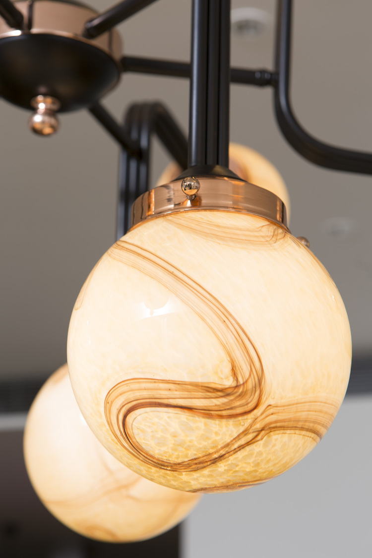 Ziron是一款完全手工制作的枝形吊灯,灵感来自古董手工制作的眼镜,不再生产。 每个手工吹制的玻璃穹顶都是独特的,具有不同的图案,但是以优雅的方式相互协调。 黑色涂漆的金属片弯曲并连接在一起,从而形成枝形吊灯的臂。 结合抛光铜,Ziron是一款现代吊灯,给人一种怀旧的感觉。