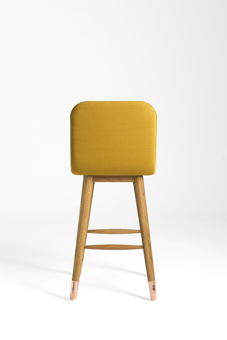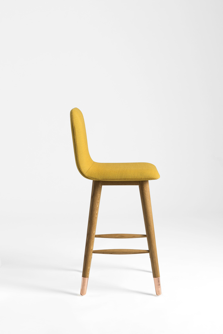Mistral Bar Stool( 米斯特拉尔吧椅)旨在为其环境带来清新,现代,自然的风格。 抛光铜和白色美国橡木腿与彩色Kvadrat纺织品相结合。