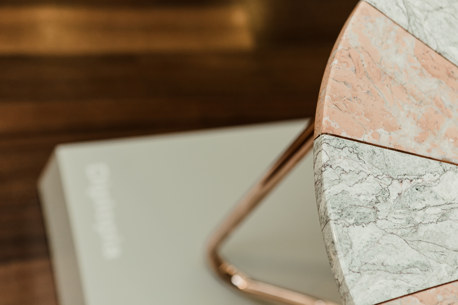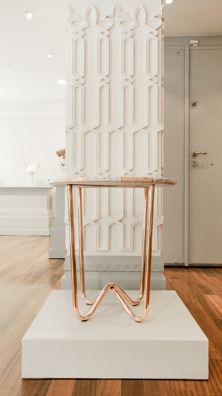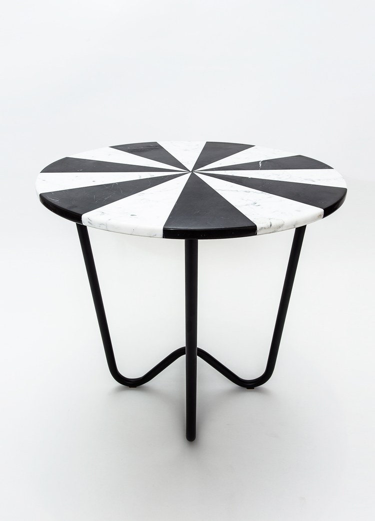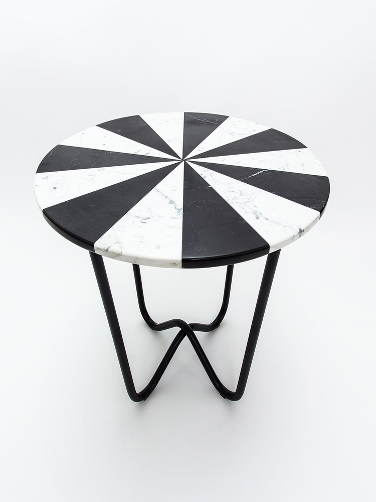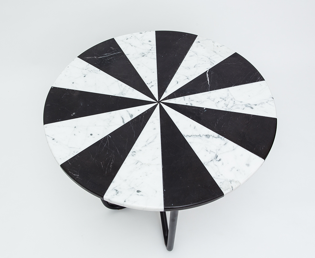 “Jasmine Pizza(茉莉花披萨)”结合了两种不同的大理石和对比鲜明的色彩,完全是手工制作,饰有弧形形铜腿。 “Jasmine Pizza”有不同的大理石,腿部饰面和尺码。