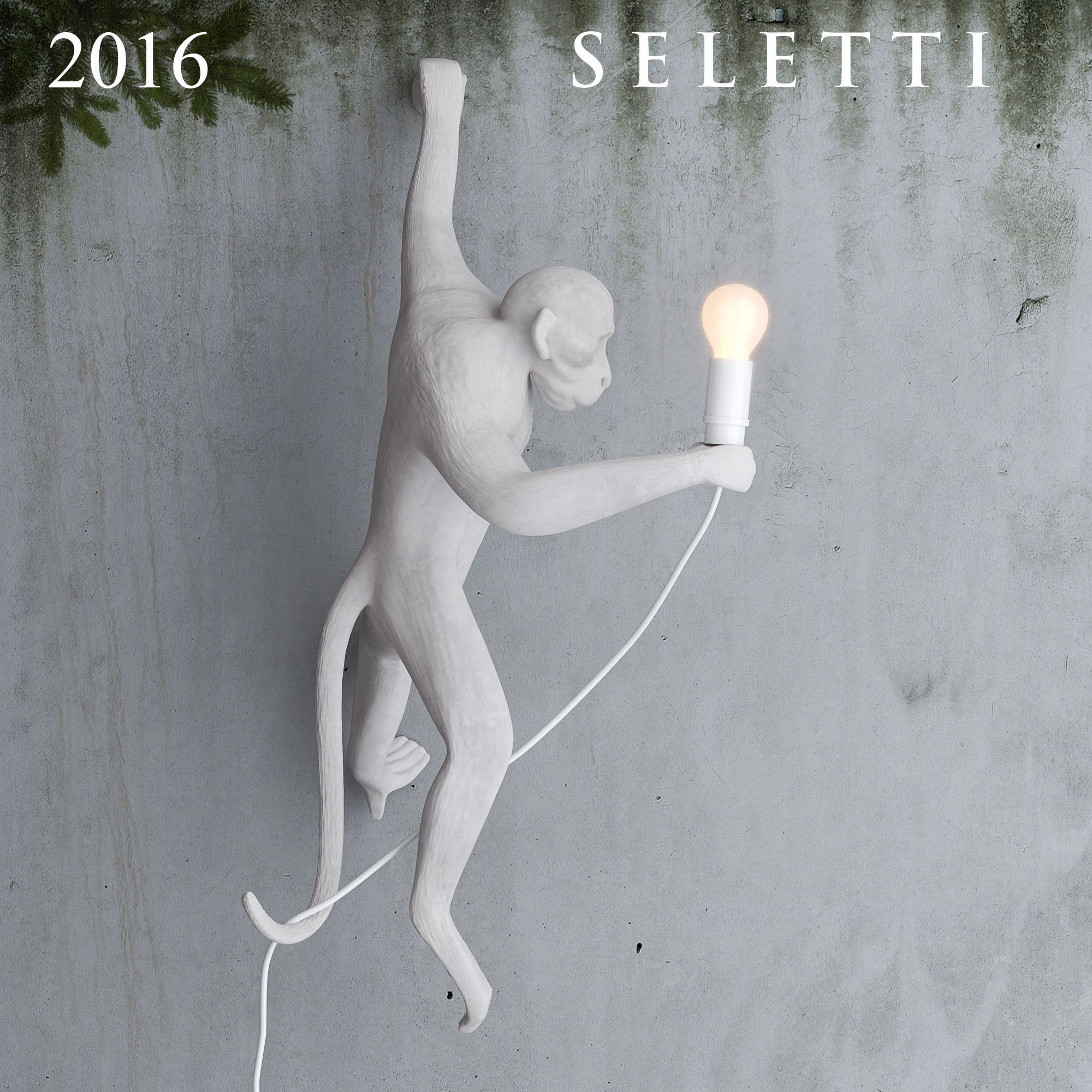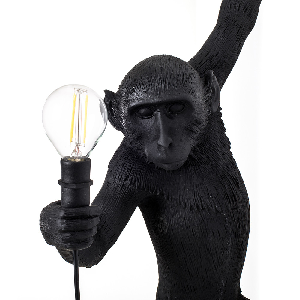 这款猴灯由树脂制成,手工完成,描绘了一只猴子在三个不同的位置,一边抓着一个LED灯泡,一边探索周围的环境:一种新的、替代的照明方式。猴子很容易让人联想到人类:这就是为什么我经常在我的雕塑作品中提到它们。在Seletti的版本中,他们溜进了我们的房子,觉得他们是在偷那些灯泡,其实是在为我们服务。
