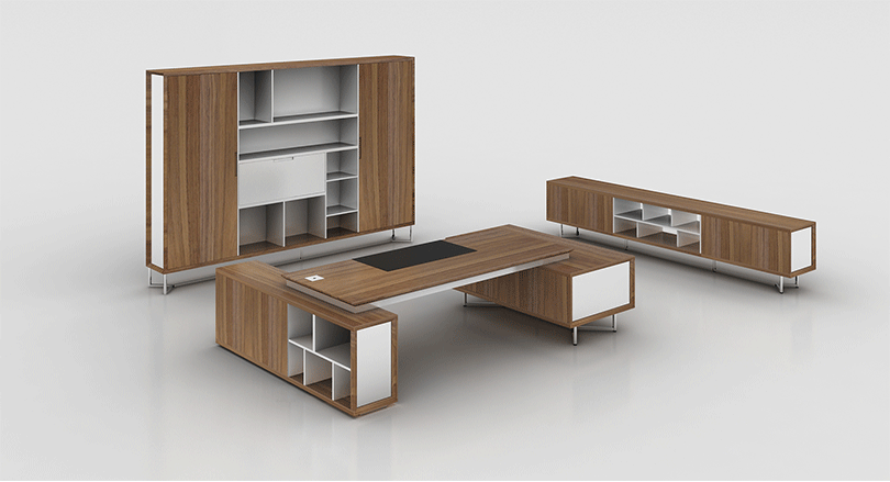 V派的设计灵感源于建筑与家具中框架的形态,框架构建简约的建筑美感,在框架中可以填充多样的材质。随着人们对办公家具质量和外观要求的日益提高,家具已不仅是简单的生活用品,个性化设计的家具越来越受到人们的青睐,此套V派实木桌组系列便在此背景下开发设计。