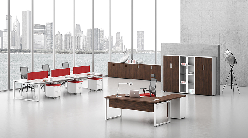凯撒系列,源自德国的设计风格,糅合木的柔美与刚强的特质,深褐色的睿智理性与白色的纯净空白带来强烈的视觉对比。桌脚部位采用白漆方框金属支撑架,或是装饰或是必须,恰到好处地表现凯撒的艺术姿态。如此,简练高雅的设计,体现出东方华奥现代办公打造的高品位、个性化的办公方式。"