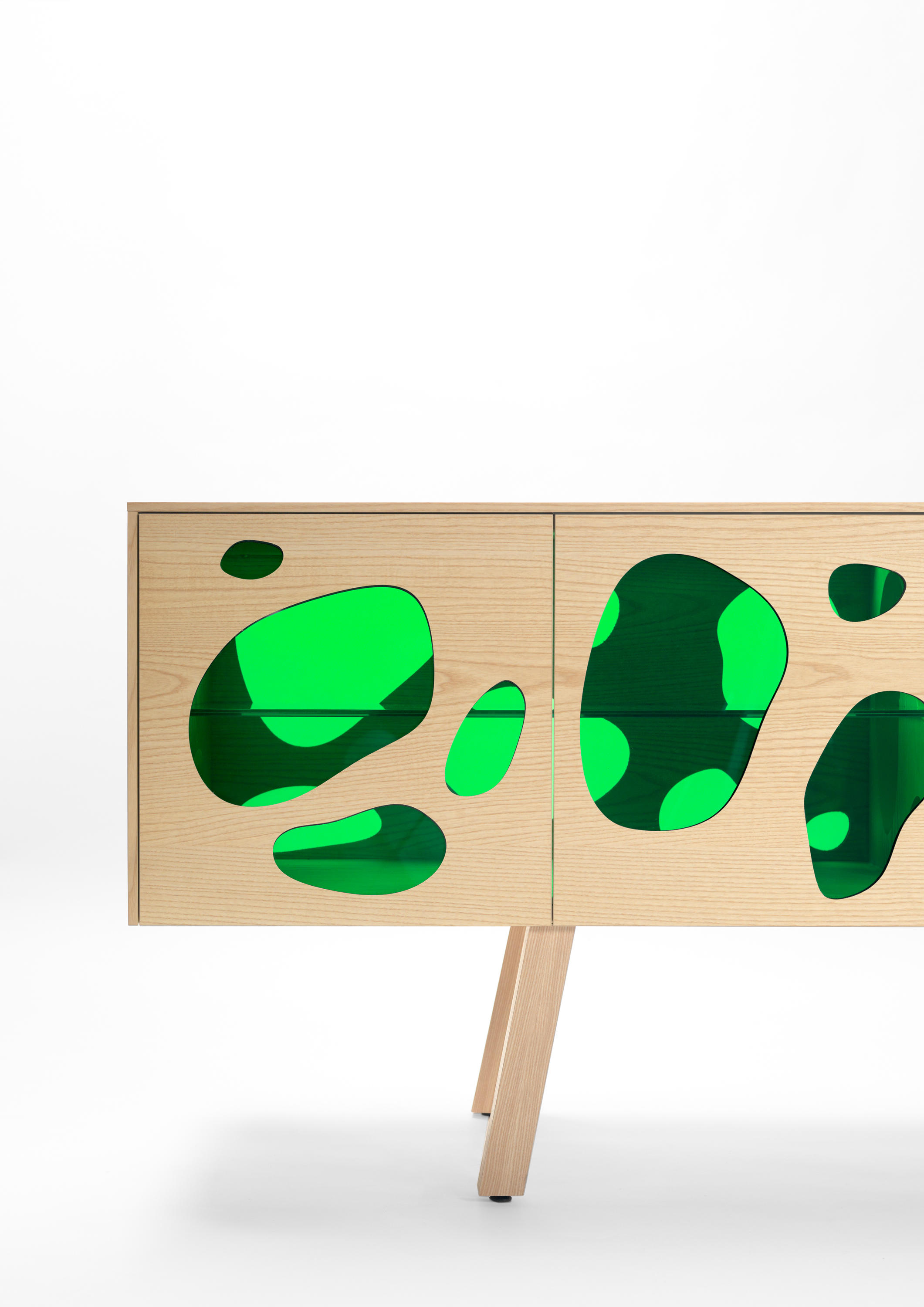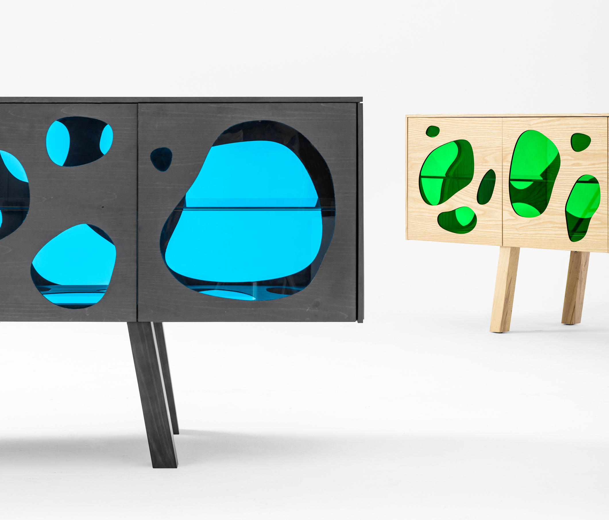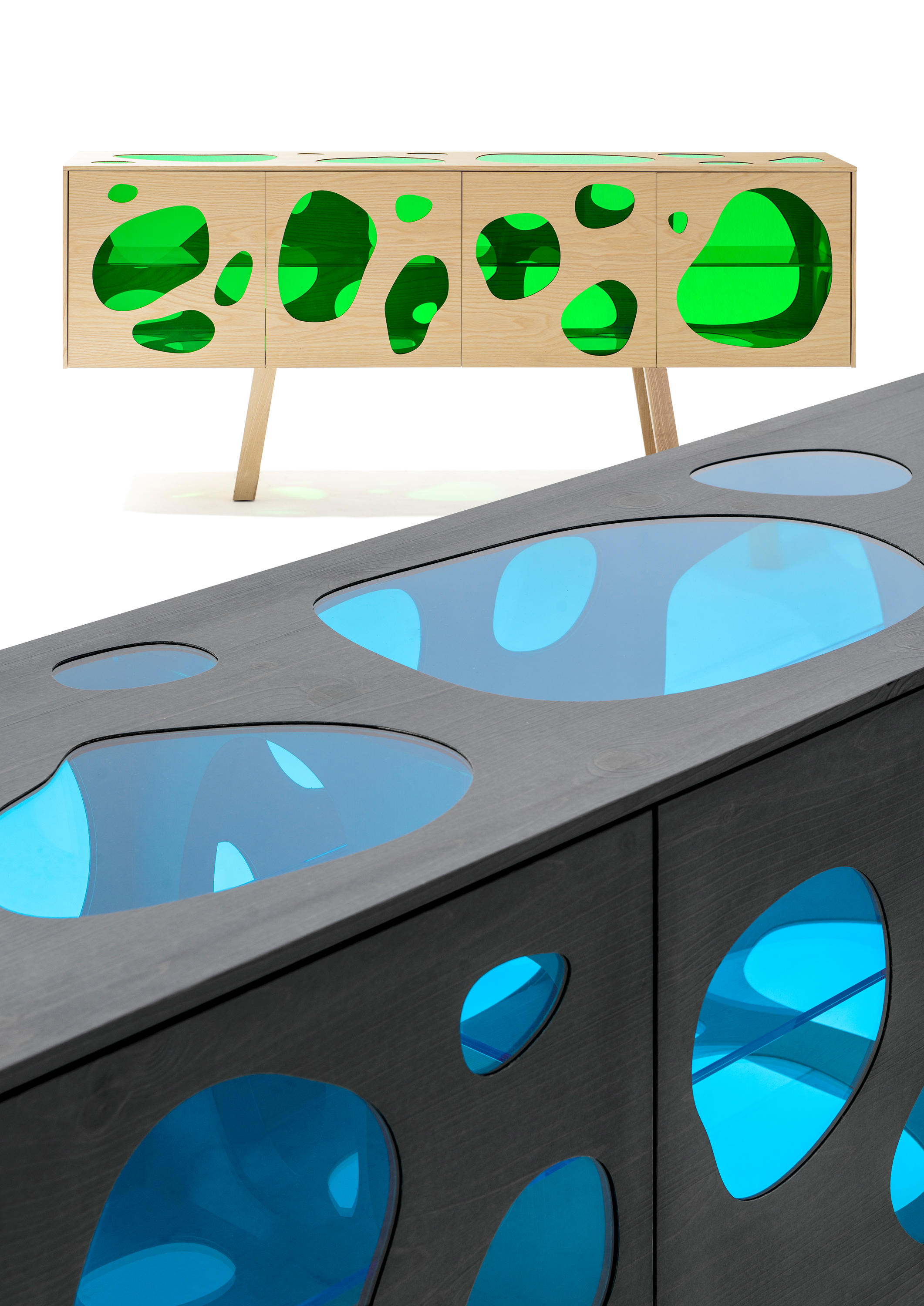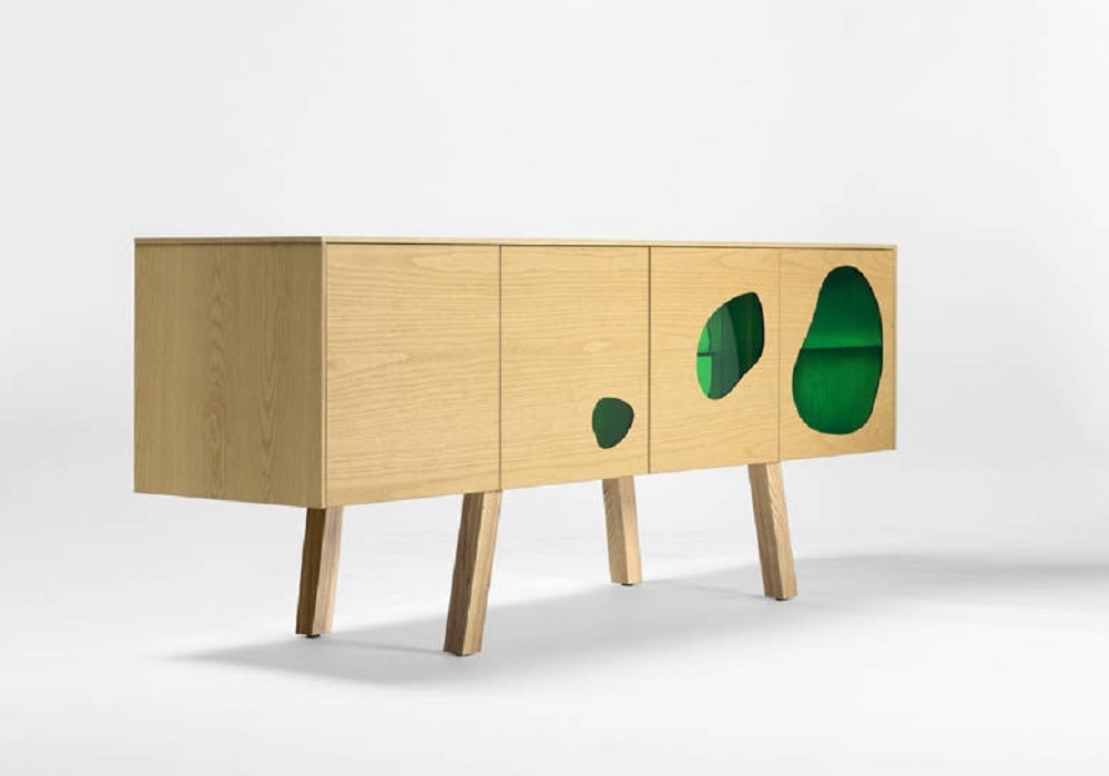 Aquário-带有门的木制餐边柜。 坎帕纳兄弟(Campana Brothers)设计的新橱柜Aquário。“我们与BD Barcelona Design的艺术总监Ramónúbeda保持联系已经有几年了。我们讨论了已经成熟并成为我们制作的自助餐的创意。费尔南多·坎帕纳(Fernando Campana)解释说:“灵感来自水族馆的想法,以创造出这件作品。” 温暖和寒冷。它已经成为我们设计语言的一部分。我也想玩对重的想法。玻璃的轻便和木头的体积。第一个的非物质性和第二个的物理性。” Fernando补充说:“餐边柜由木材,白蜡木或松木以及彩色玻璃门制成。