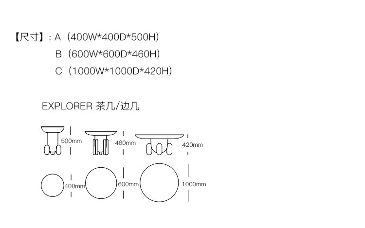 EXPLORER 茶几/边几 系列尺寸/示意图