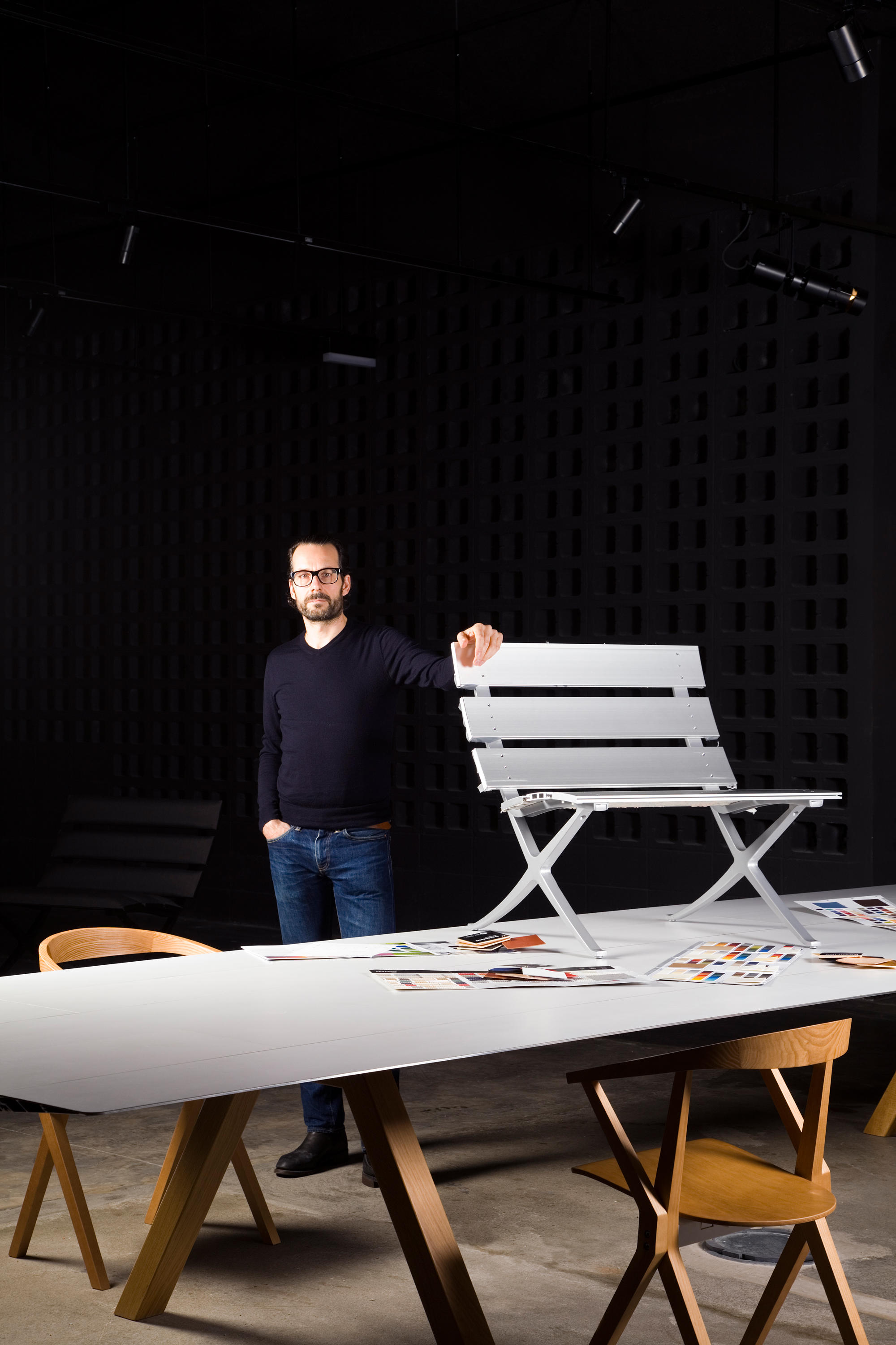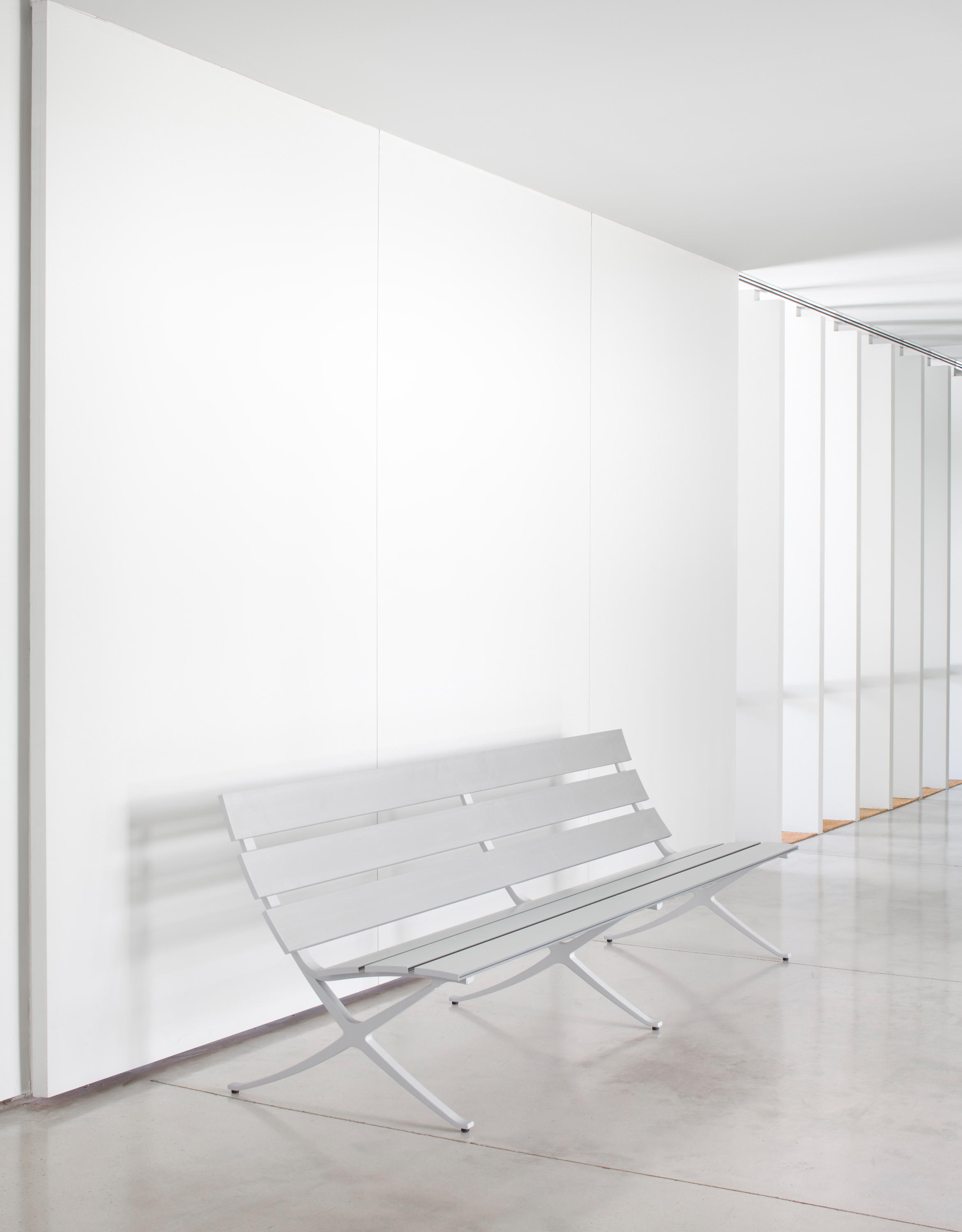 长凳B是康斯坦丁·格里奇(Konstantin Grcic)为BD的Extrusion Collection设计的新设计,该长凳具有挤压铝材,是一系列产品的主要动力。可以容纳8人的长凳。它可以用于室内或室外,可以不带武器,可以软垫或保留纯铝。