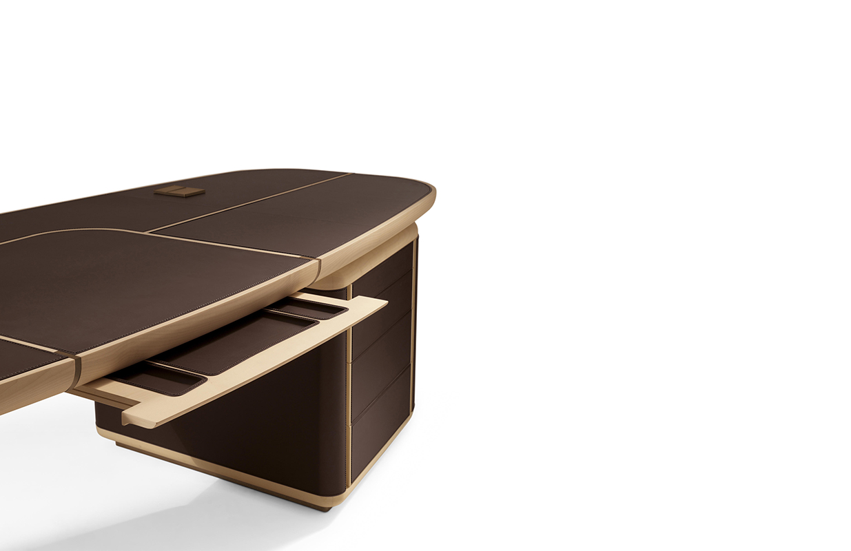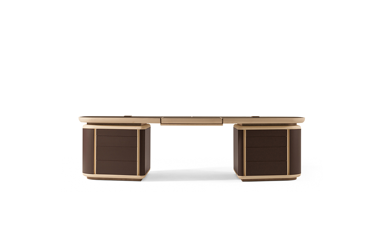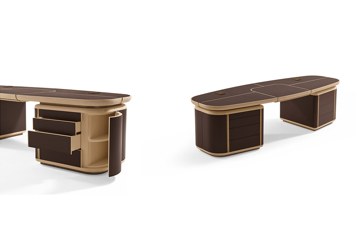 抽屉的柜子是在弯曲胶合板覆盖着马鞍 皮革,完全可移动的抽屉休会 系统关闭滑动跑步者和沉默。 一个中央滑 抽屉里放置两个柜子的抽屉和之间 特点是车厢内的存在,覆盖 与马鞍皮革,笔和纸。 这个概要文件的基础, 顶部插入和抽屉的柜子之间的间隔 和顶部画在青铜色自然效果。