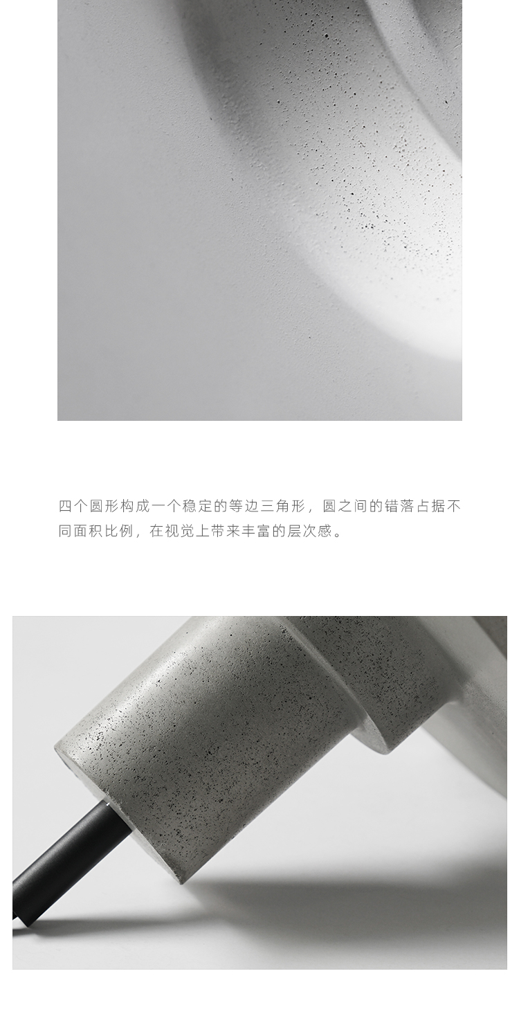 一个圆形向上垒叠指向高处,如面世的孩童玩耍积木,没有具象的意识形态简单而纯粹;在数字的理性和生命的感性中游离,在工业生产的体系下建立标准,与空气的交融中反应碰撞,表面所留下来的痕迹是混凝土的绽放。