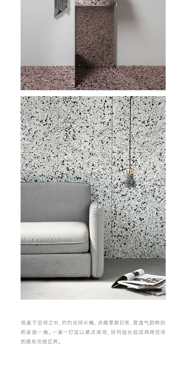 以材质再生为基本手段的水磨石系列,将陶瓷废渣再生成简洁形态的日常性家具,以衍生产业的形式回归到大众层面的使用中。 中国佛山,这片拥有全球最大最成熟的陶瓷产业链和产业集群的建筑陶瓷工厂的土地,承载着每年400万吨陶瓷废弃物带来的环境污染。 以材质再生融入日常,不仅是激发商业价值的大胆尝试,是环保理念的日常化实践,更是对自我尊严的基本坚守和追求,我们探寻陶瓷跨越地域局限的一种当代突破!