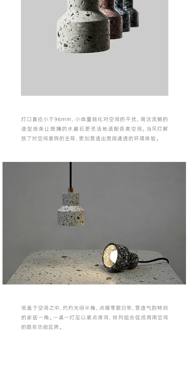 以材质再生为基本手段的水磨石系列,将陶瓷废渣再生成简洁形态的日常性家具,以衍生产业的形式回归到大众层面的使用中。 中国佛山,这片拥有全球最大最成熟的陶瓷产业链和产业集群的建筑陶瓷工厂的土地,承载着每年400万吨陶瓷废弃物带来的环境污染。 以材质再生融入日常,不仅是激发商业价值的大胆尝试,是环保理念的日常化实践,更是对自我尊严的基本坚守和追求,我们探寻陶瓷跨越地域局限的一种当代突破!