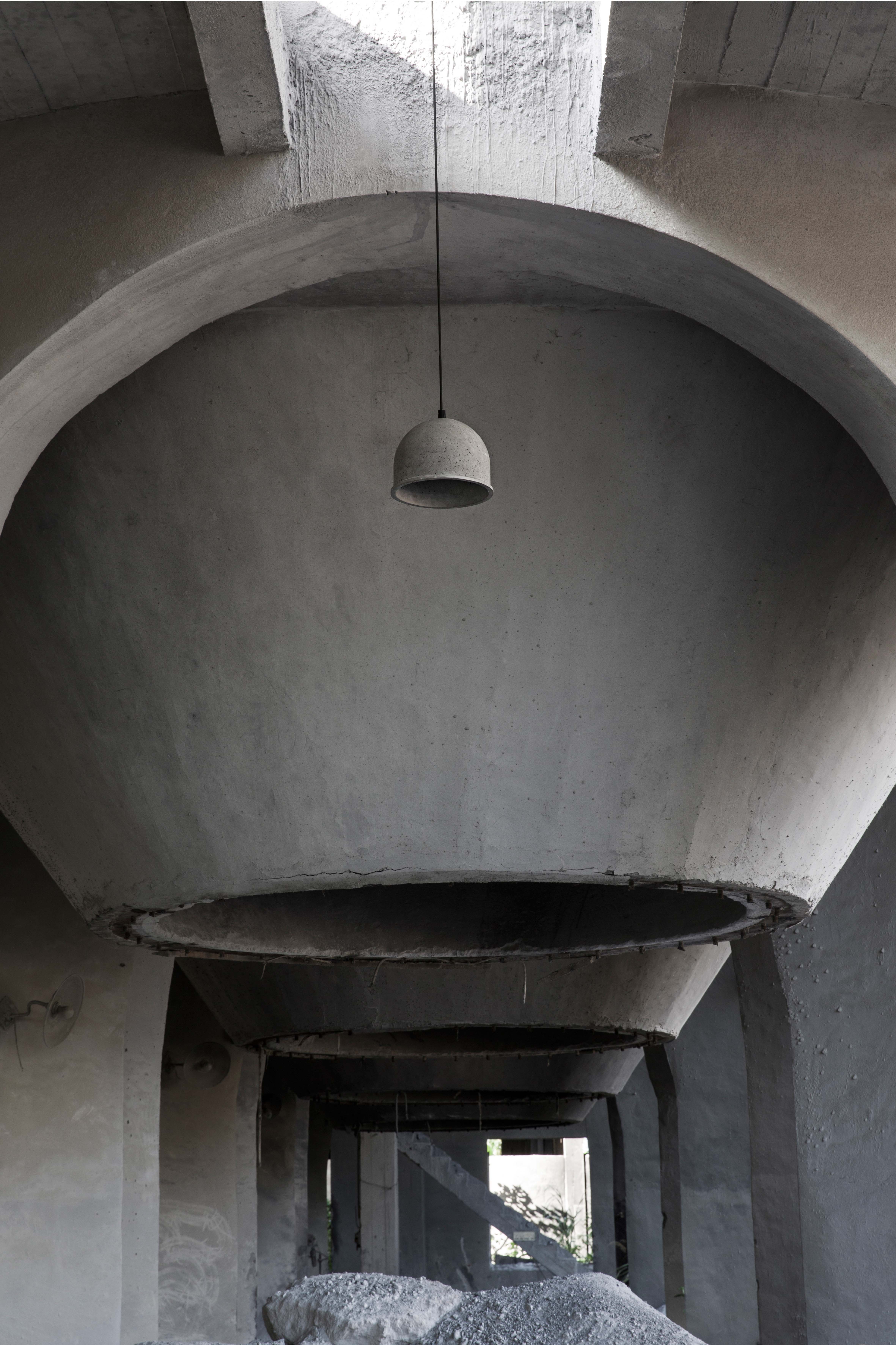冒,是一款吊灯,古朴的线条,温润而稳重的触感,有圆满厚重如罩鈡般的水泥外壳,格外拙朴可爱。 虽有水泥的厚重感,却又轻盈薄,厚重与轻薄,两种矛盾的特质同时出现在“冒”身上,竟呈现出一种和谐的美感。 想象在高大空旷的水泥建筑中,凌空一“冒”,细腻的灰消隐于斑驳的灰中,只余一片光辉,空气中浮动的点点星尘似乎也清晰可见。