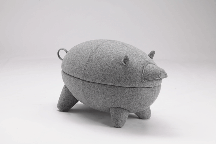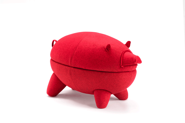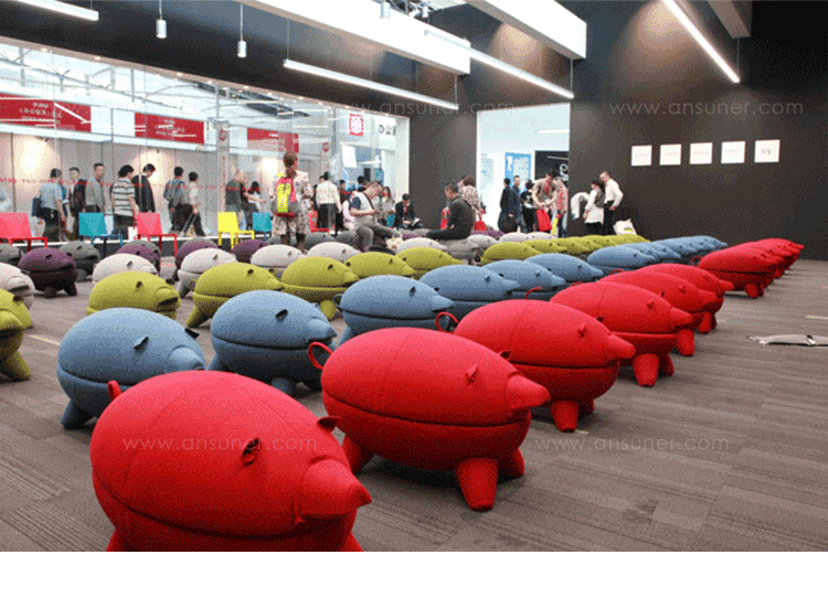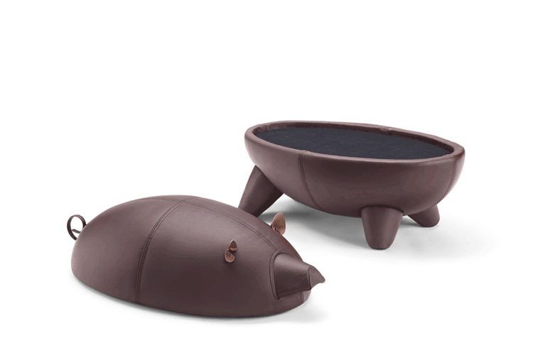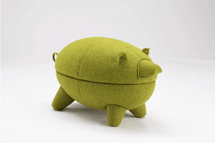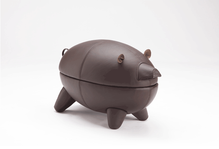 猪圆凳与现实中的动物“小猪”十分形似,设计灵感亦来源于此。基于猪圆凳简约的设计线条,其外表可做成油漆、皮革或布,颜色搭配更为丰富多彩,方便搭配各种场景和范围。猪圆凳同时还是一张多功能的圆凳,取去猪的上半部分,可作为茶几使用,其材质为玻璃钢,下隔层可以放置小物件和杂志等。