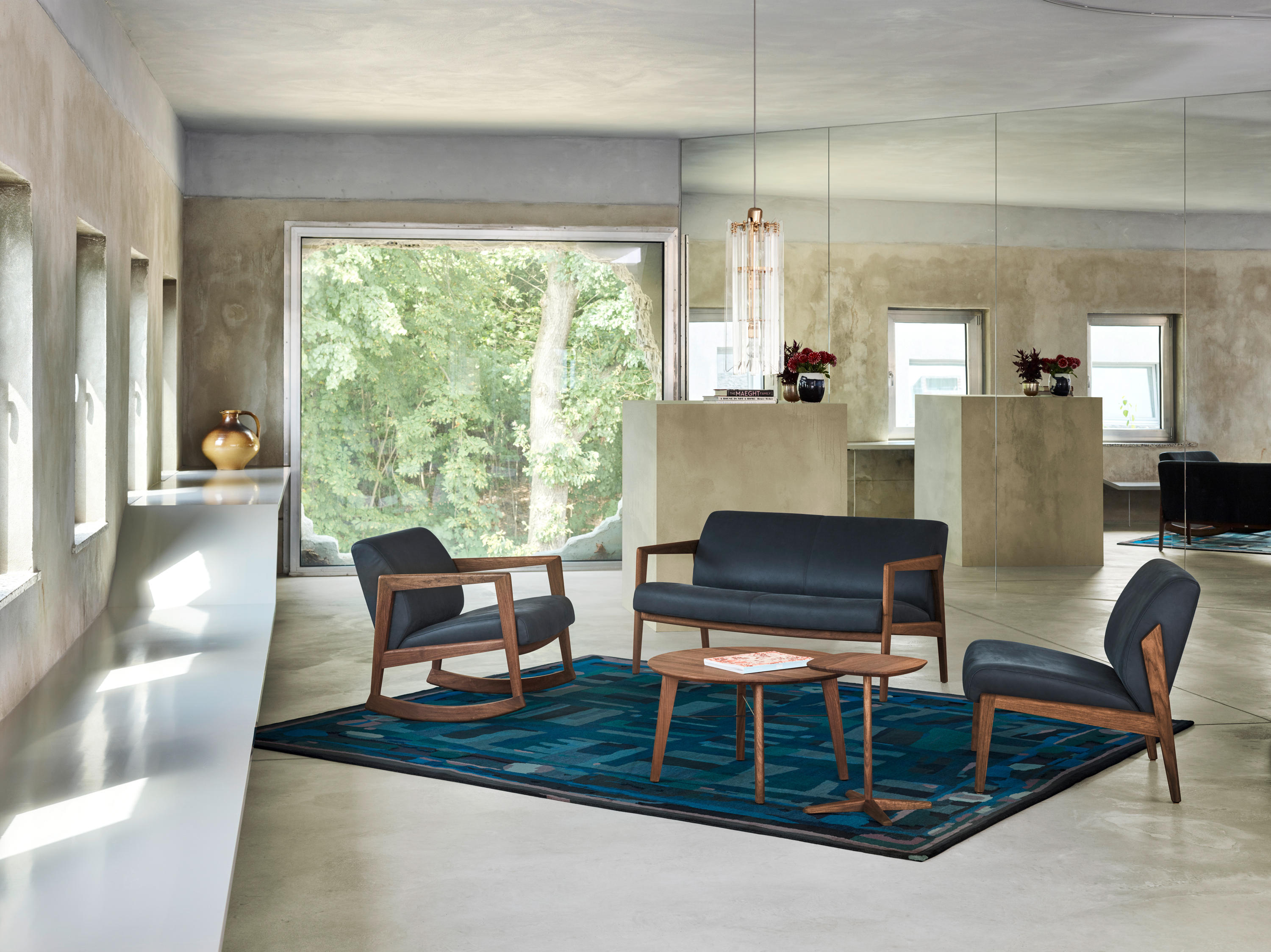 几何图形的轮,水曲柳或胡桃木或实木框架,优质环保高密海绵填充、外裹高级进口布艺或PU,做工精湛,这是860系列休闲椅的特征。非常舒适的坐垫和靠背,出的、动态的轮廓,适用于商业和休息环境。设计师Lydia Brodde说:“我尤其着迷于1960年代的设计及其清晰,几何的形式。 我想将这些元素转化为一个新的永恒。”。这就是她设计860的初衷。一把适用于任何环境的椅子,并可根据个人喜好赋予其个性化,860休闲椅做到了。实木的框架,有扶手和无扶手两种版本,在配上一个脚凳椅,保证了最大松弛度和舒适感。