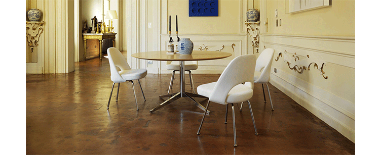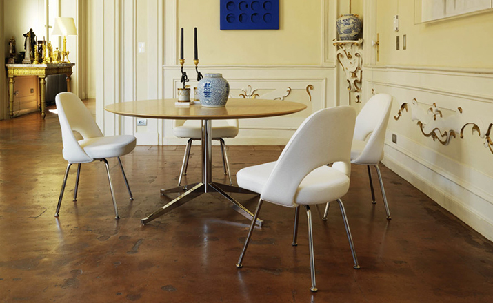 The Executive chair has been keeping businessmen's tushies comfy since 1946.I've noticed it turning up as a dining chair around Houzz a lot lately,and it also makes a good desk chair or occasional chair.Manufactured by Knoll;according to the original and exacting specifications of the designer.Made in U.S.A.Materials:Molded reinforced polyurethane shell;contoured plywood seat;steel leg base;seamless tubular steel legs with polished chrome finish.